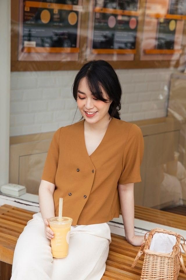 - Details: Button||Neckline: V-Neck||Sleeve Length: Short Sleeve||Sleeve Type: Drop Shoulder ||Style: Casual, Colour: Brown || Package content: 1 women shirt.