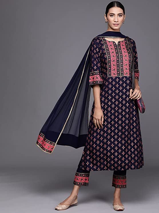 • This three-piece set includes kurta, Pant and dupatta.