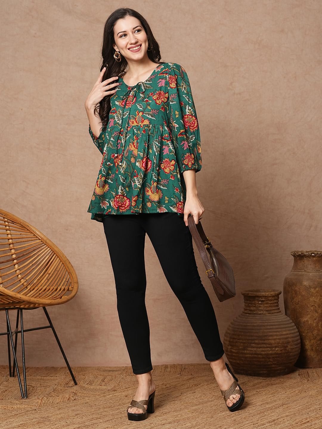- Details: Button||Neckline: Round Neck||Sleeve Length: Full Sleeve||Style: Casual, Colour: Green || Package content: 1 women Top.