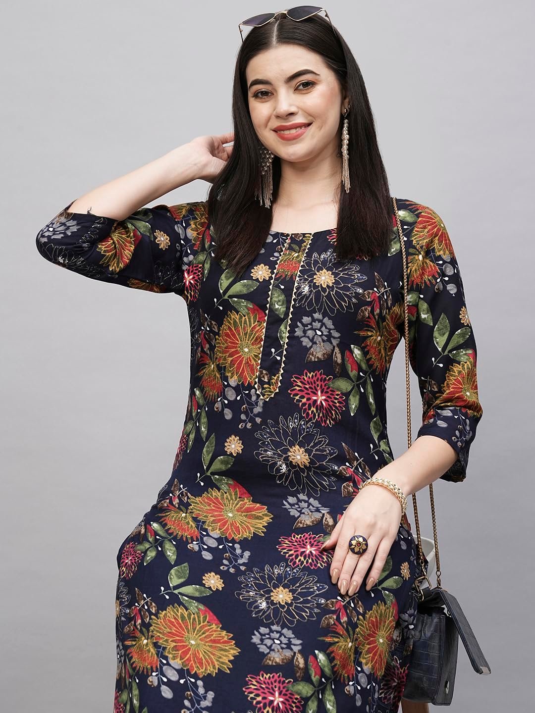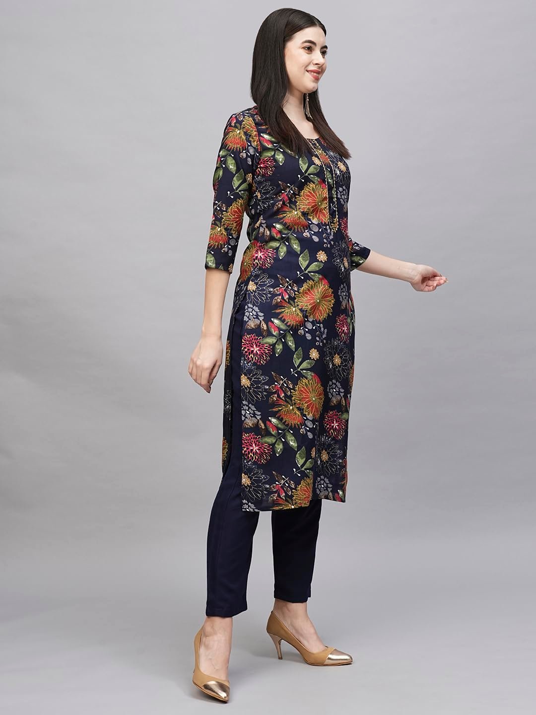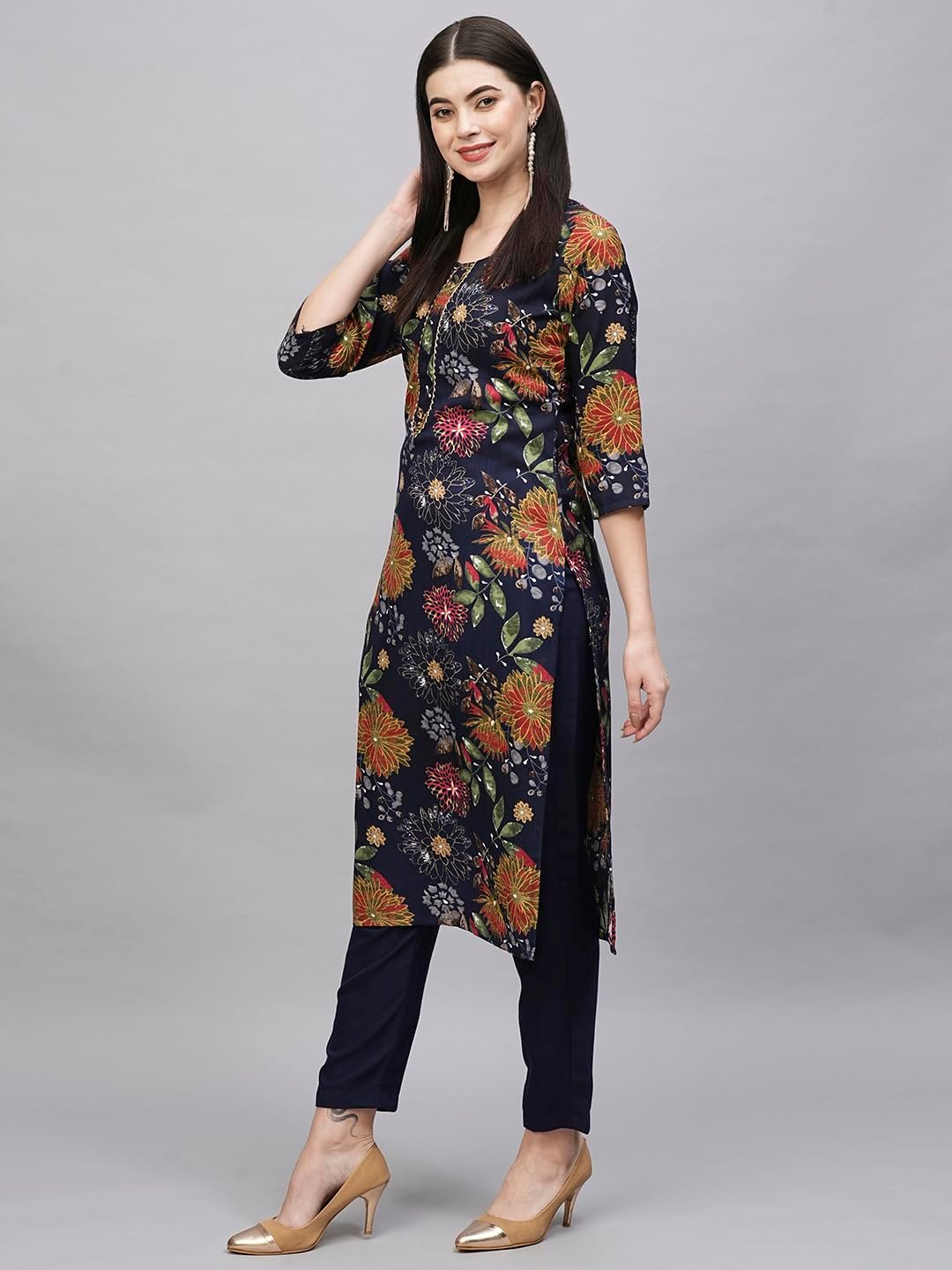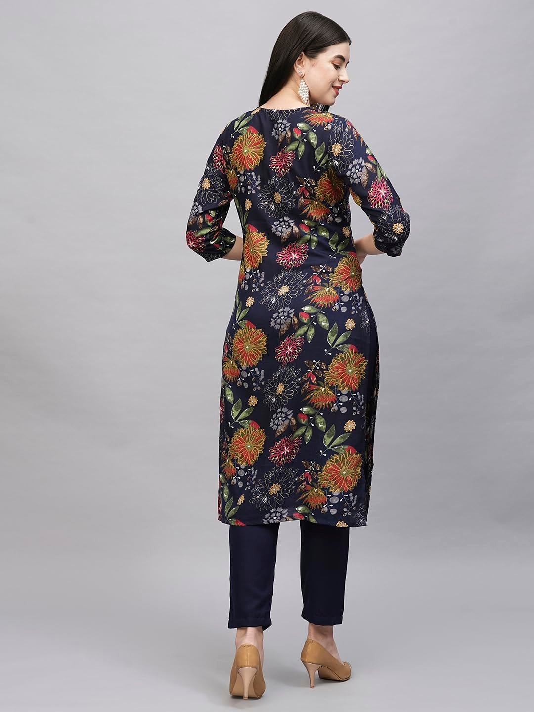 - This set includes: 1 Kurta with 1 Pant || Work : Printed || Neck Style:- Round Neck