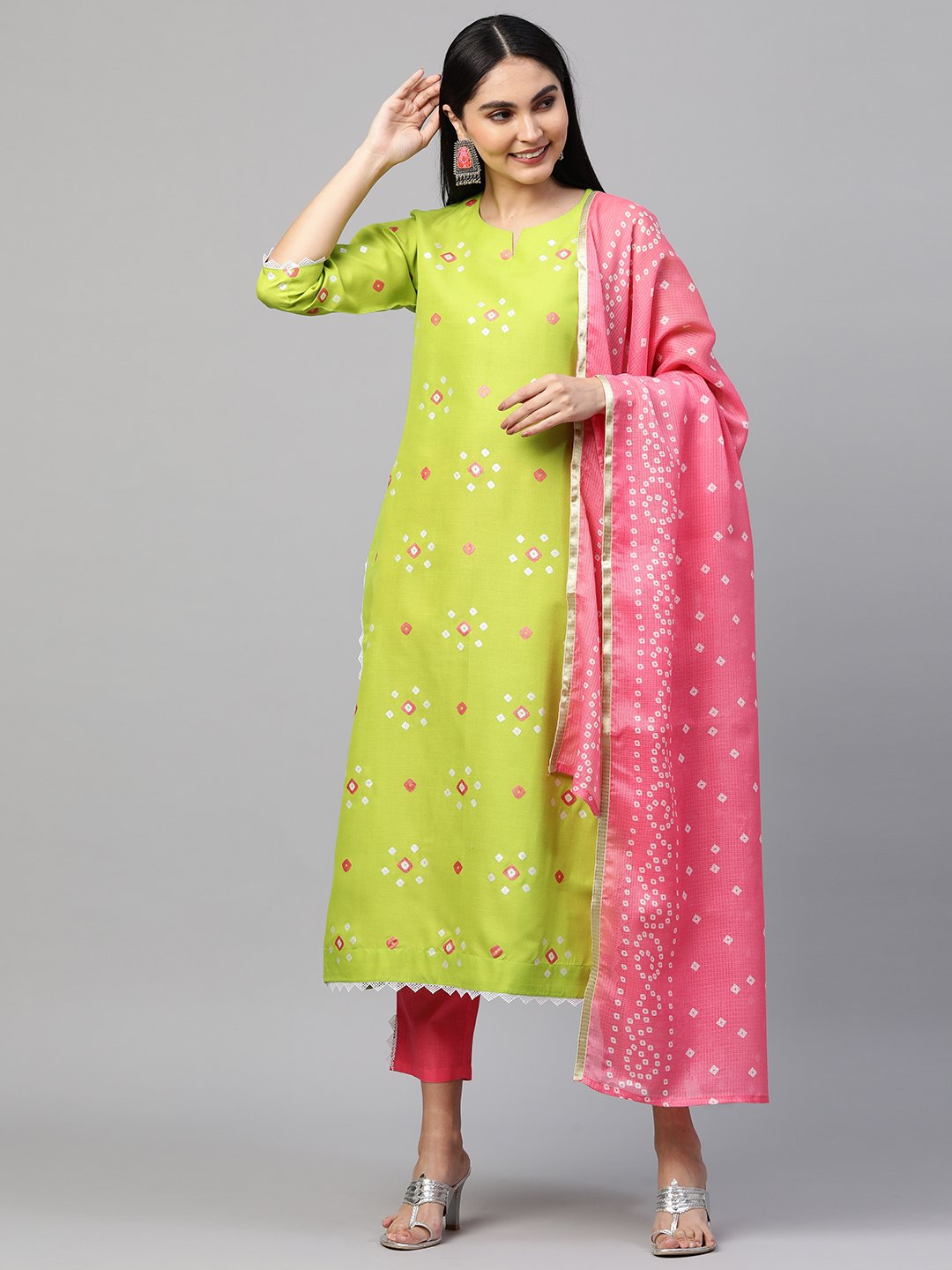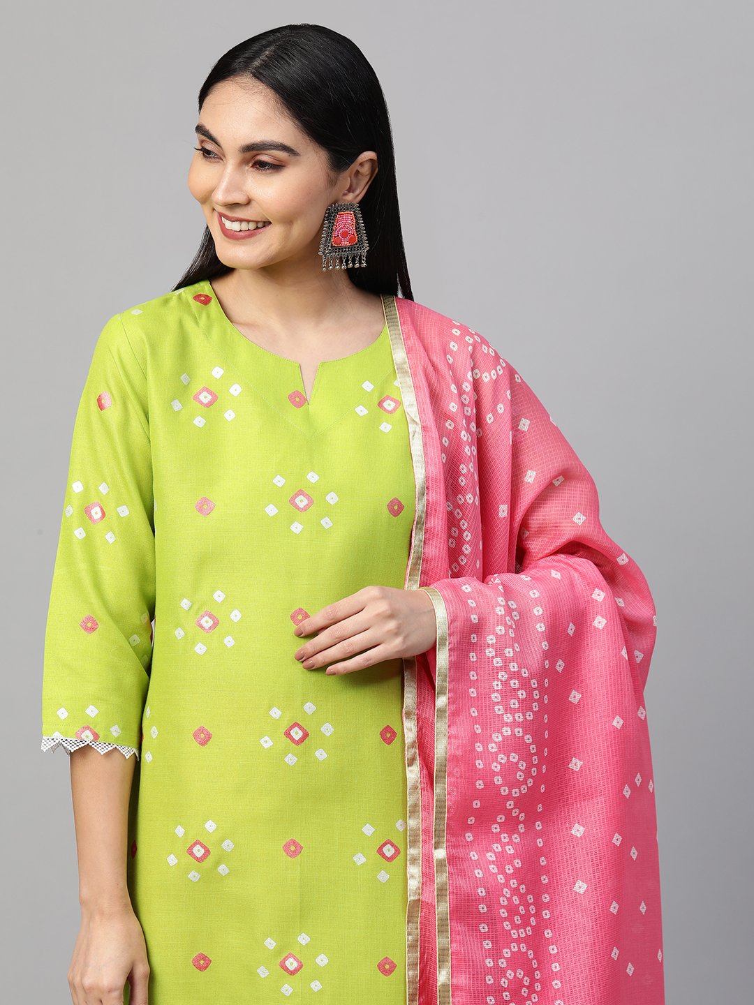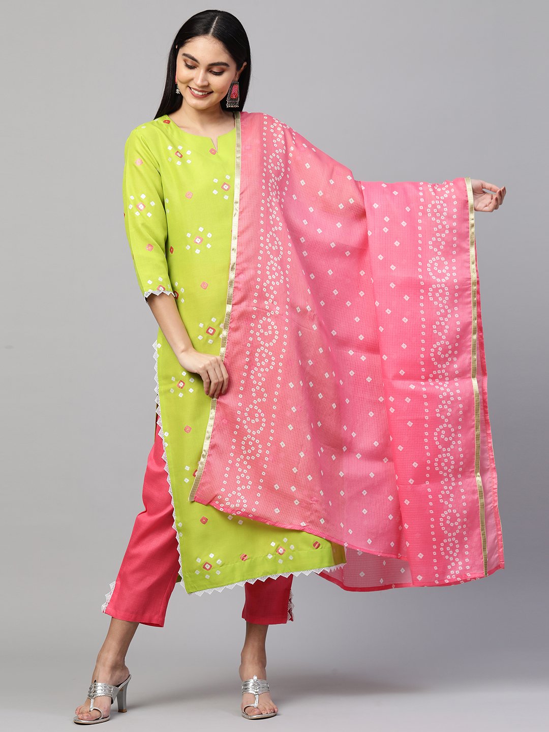 - This three-piece set includes: Kurta with Pant And Dupatta