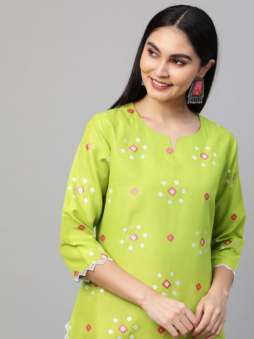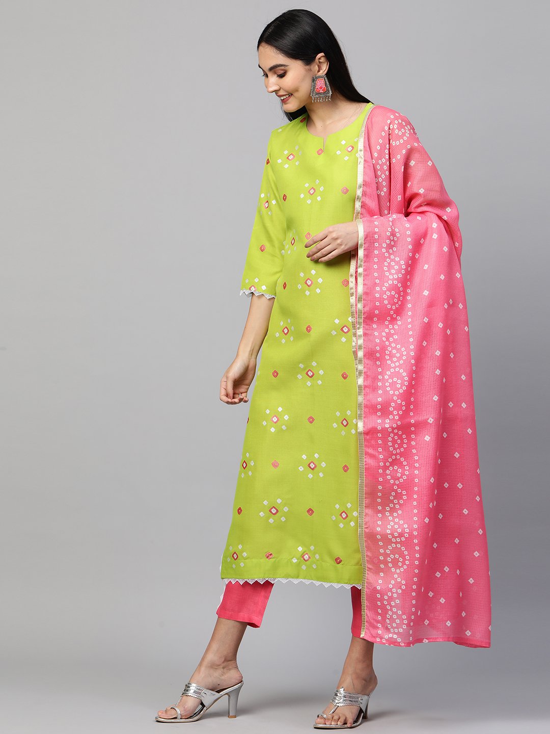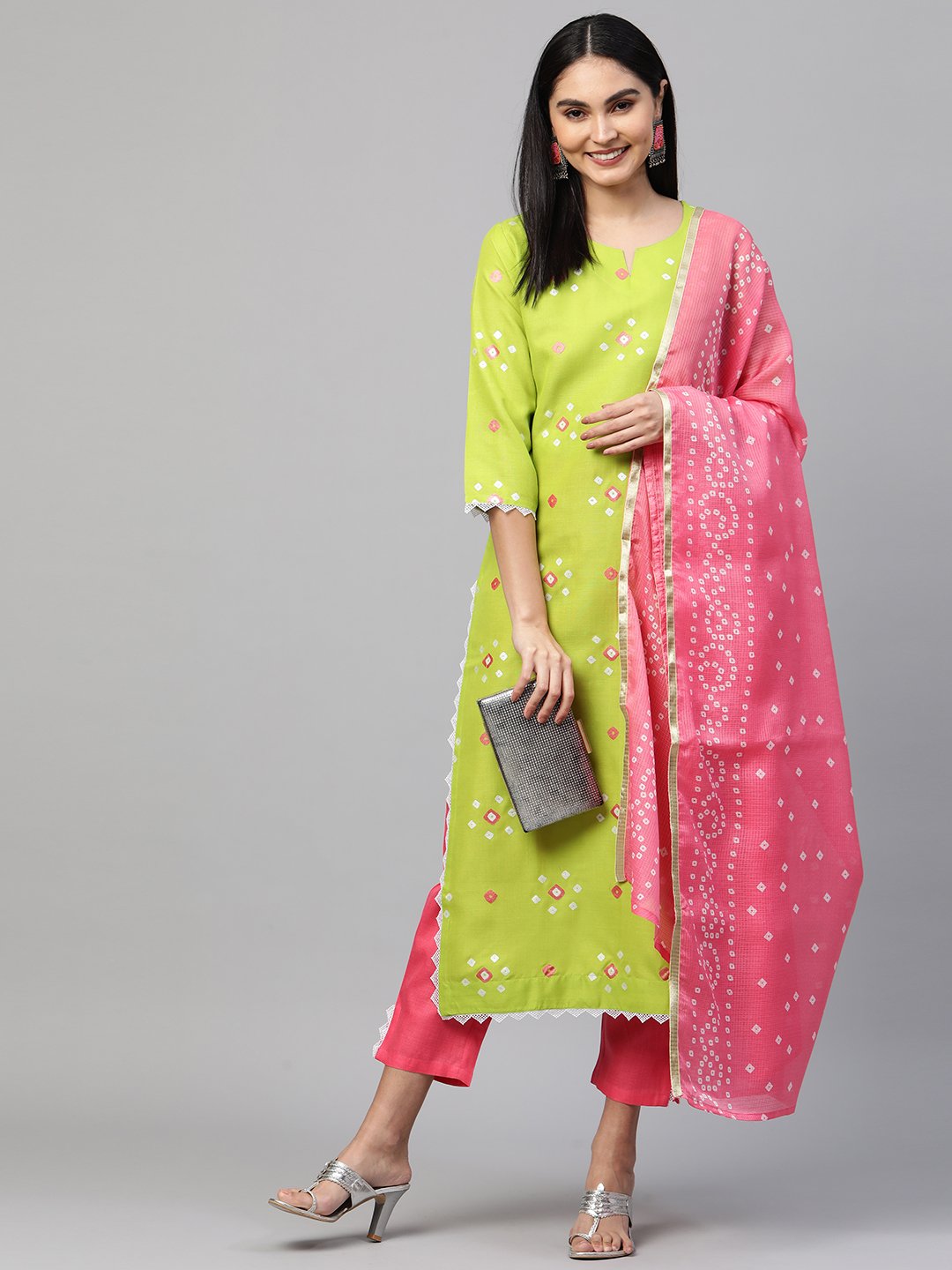 - This three-piece set includes: Kurta with Pant And Dupatta