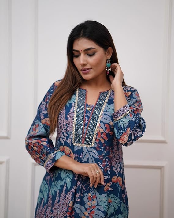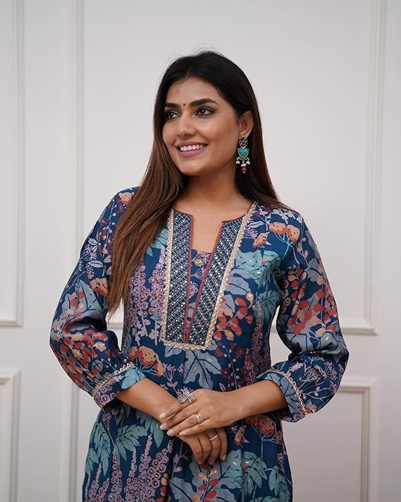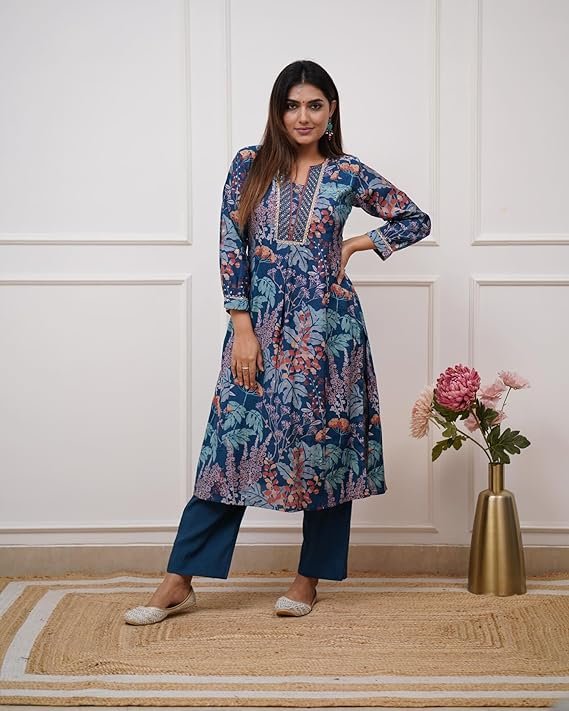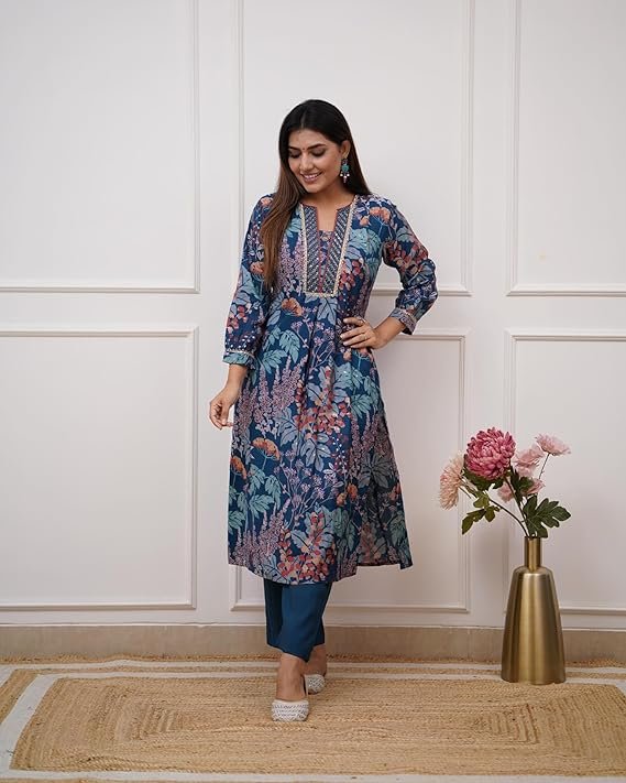 • This set includes: 1 Kurta and 1 Pant || Work:- Printed & Beautiful Neck Design || Neck Style:- Round Neck