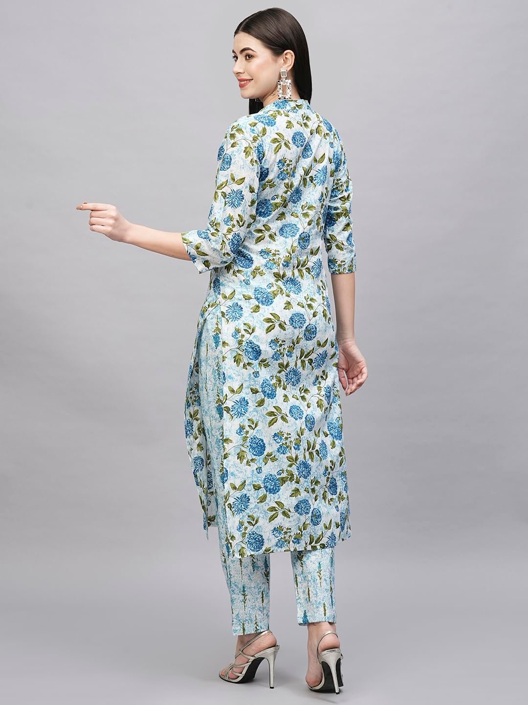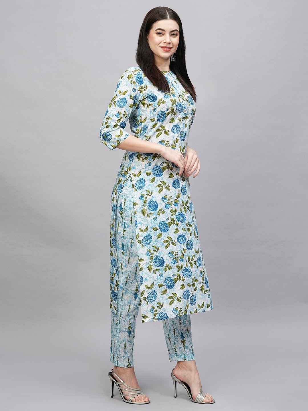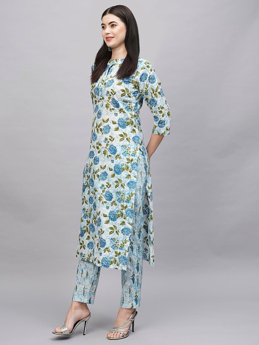 - This set includes: 1 Kurta with 1 Pant || Work : Printed || Neck Style:- Round Neck