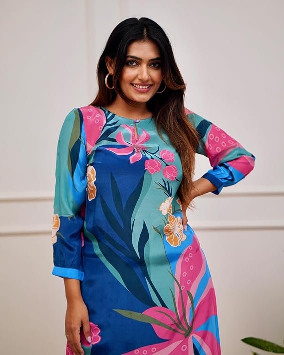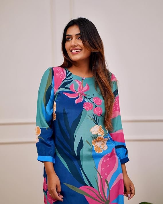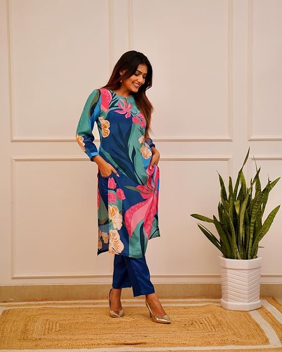- This set includes: Fancy Ethnic Co-ord Set 1 Kurta with 1 Pant || Work : Printed || Neck Style:- Round Neck