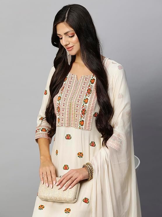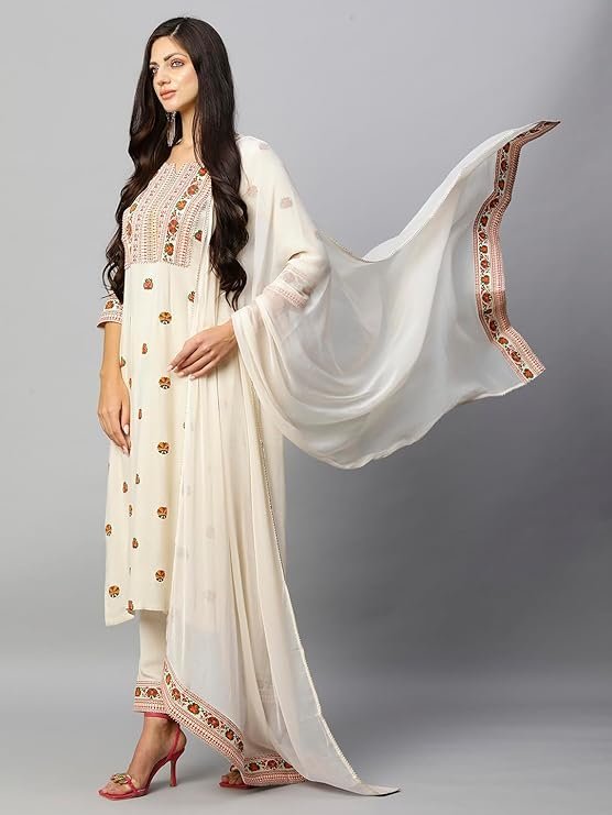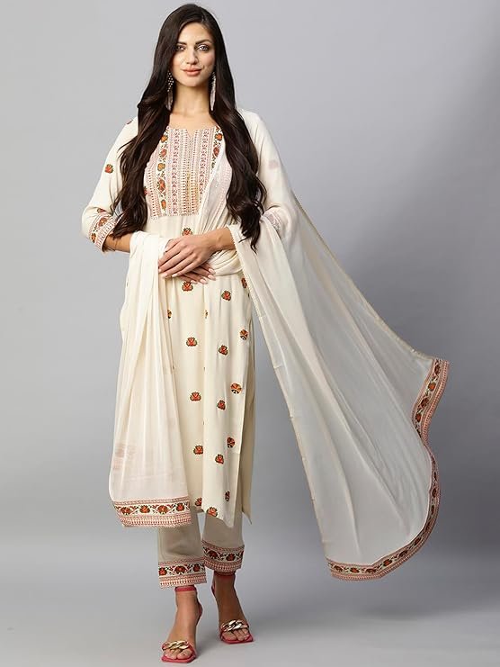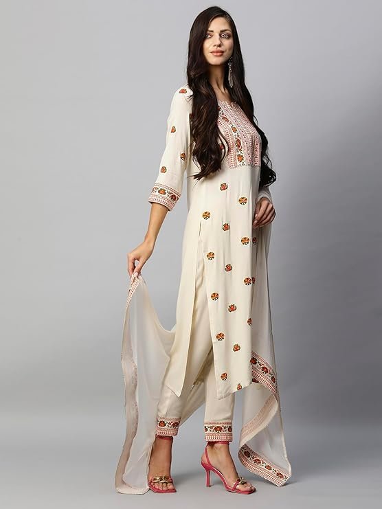 - This set includes: 1 Kurta and 1 Pant with Dupatta || Work :- Printed || Neck Style:- Round Neck