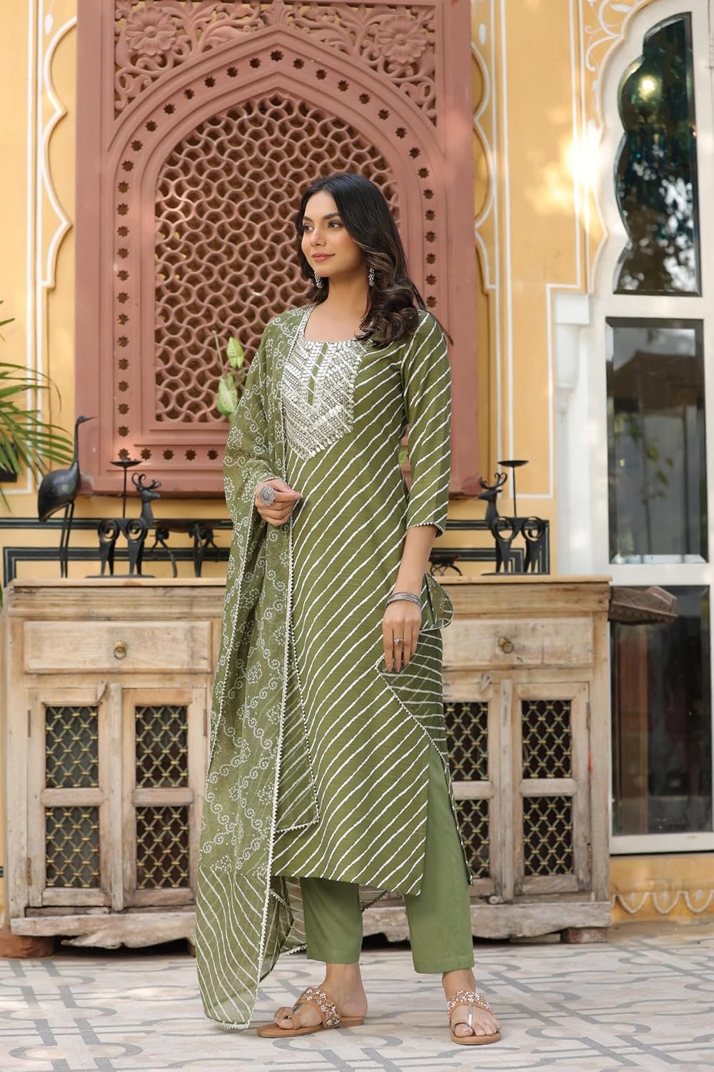 GoSriKi Women’s Cotton Blend Straight Printed Kurta with Pant & Dupatta