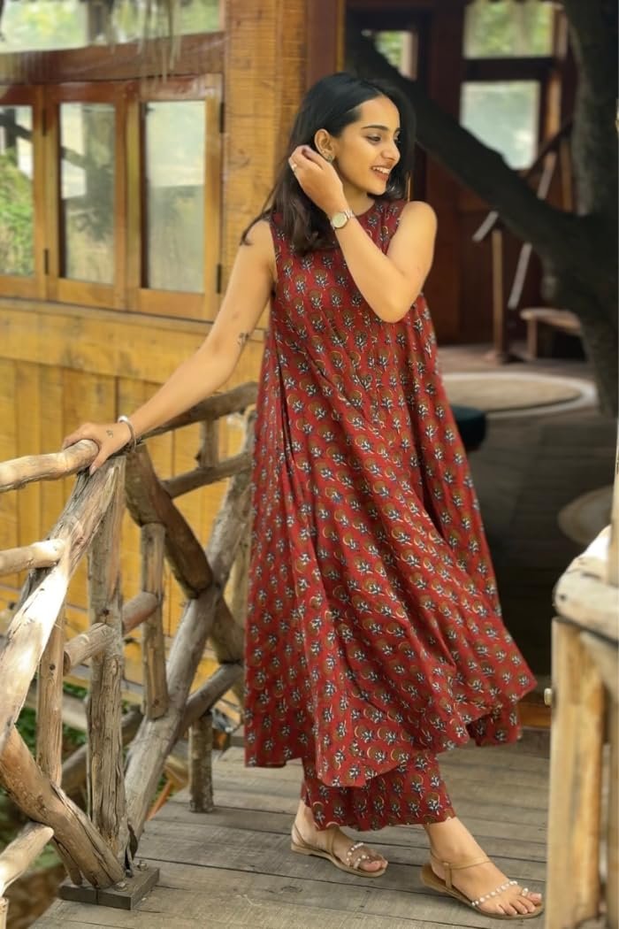 - Style: Anarkali || Length: Calf Length || Sleeves: Sleeveless || Size Chart- Kurta- S-36 in, M-38 in , L-40 in , XL-42 in , XXL-44 in,Pant :- S-28 in, M-30 in , L-32 in, XL-34 in, XXL-36 36 in, For more, please refer to the size chart below.