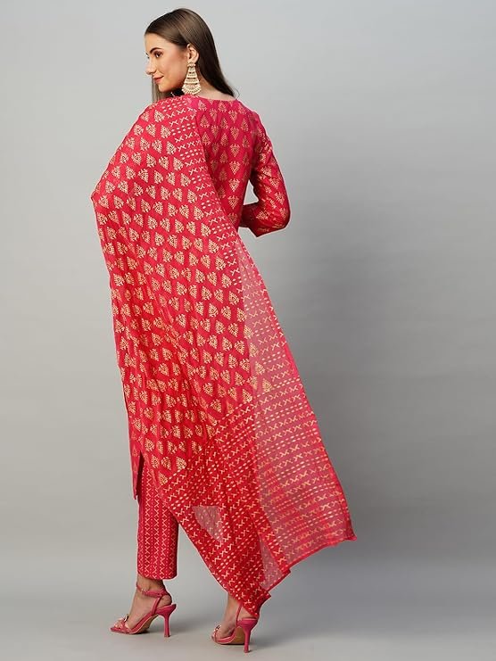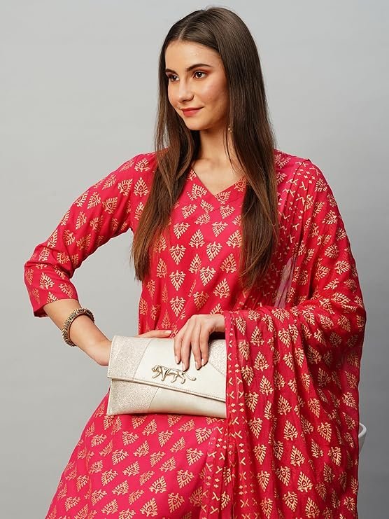 • This set includes: 1 Kurta and 1 Pant with Dupatta || Work :- Printed || Neck Style:- Round Neck