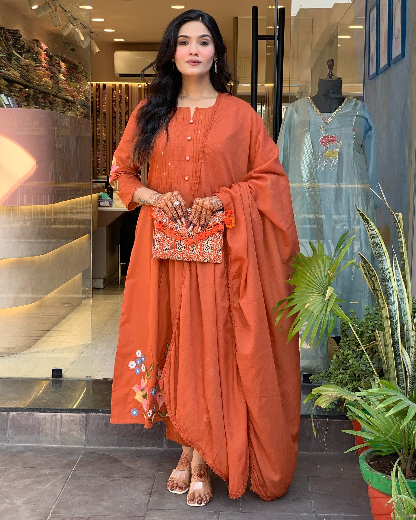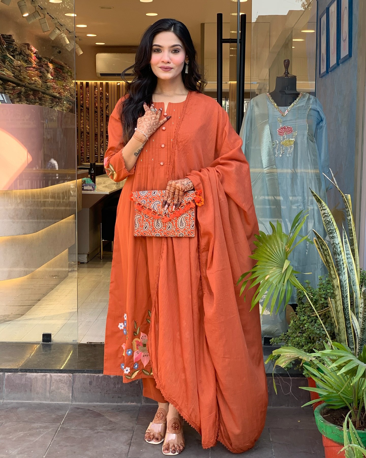 • This set includes: 1 Kurta and 1 Pant with Dupatta || Neck Style:- Round Neck