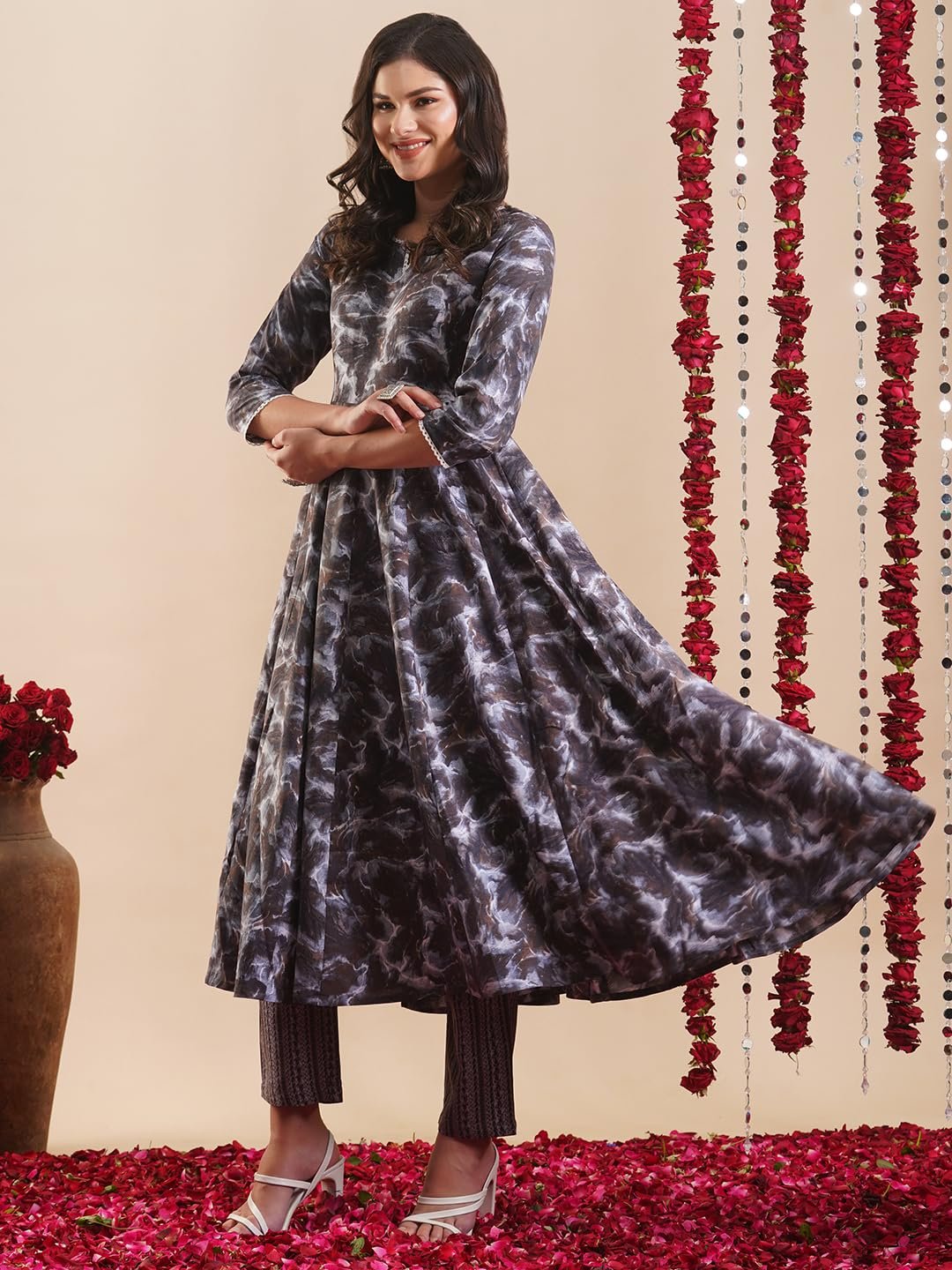 - Style: Anarkali || Length: Calf Length || Sleeves: 3/4 Sleeves || Size Chart- Kurta-S-36 in, M-38 in , L-40 in , XL-42 in , XXL-44 in,Pant :- S-28 in, M-30 in , L-32 in, XL- 34 in , XXL- 36 in,For More Please refer to the size Chart below.