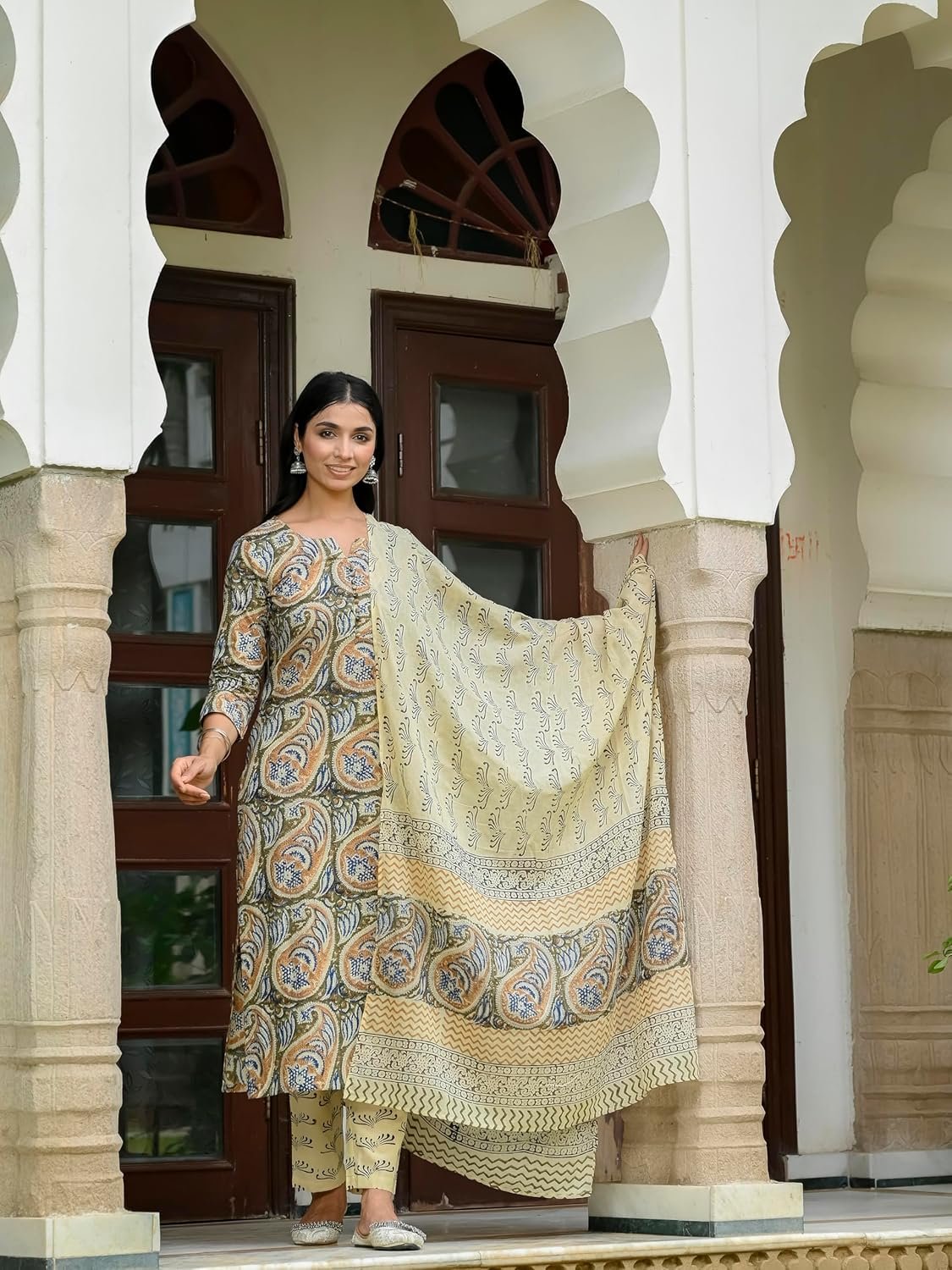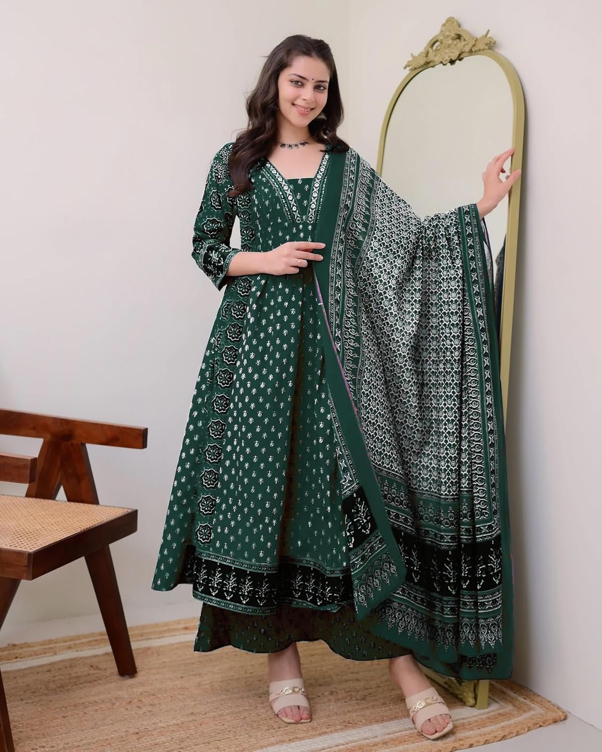 • Style: Anarkali|| Length: Calf Length || Sleeves: 3/4 Sleeves || Size Chart- Kurta-S-36 in, M-38 in , L-40 in , XL-42 in , XXL-44 in,Pant :- S-28 in, M-30 in , L-32 in, XL- 34 in , XXL- 36 in,For More Please refer to the size Chart below.