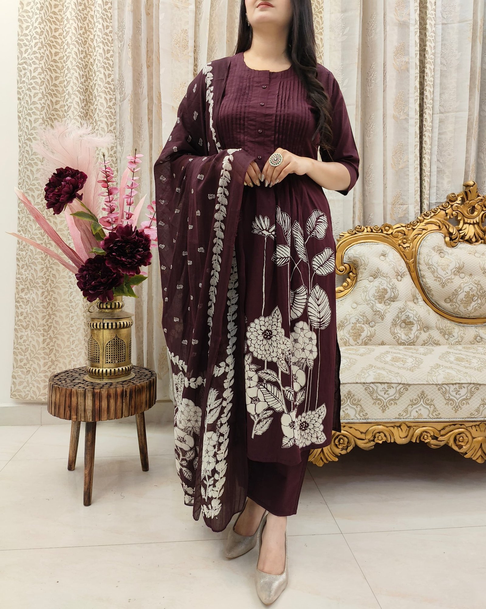- This set includes: 1 Kurta and 1 Pant with Dupatta || Work :- Floral Printed|| Neck Style:- Round Neck
