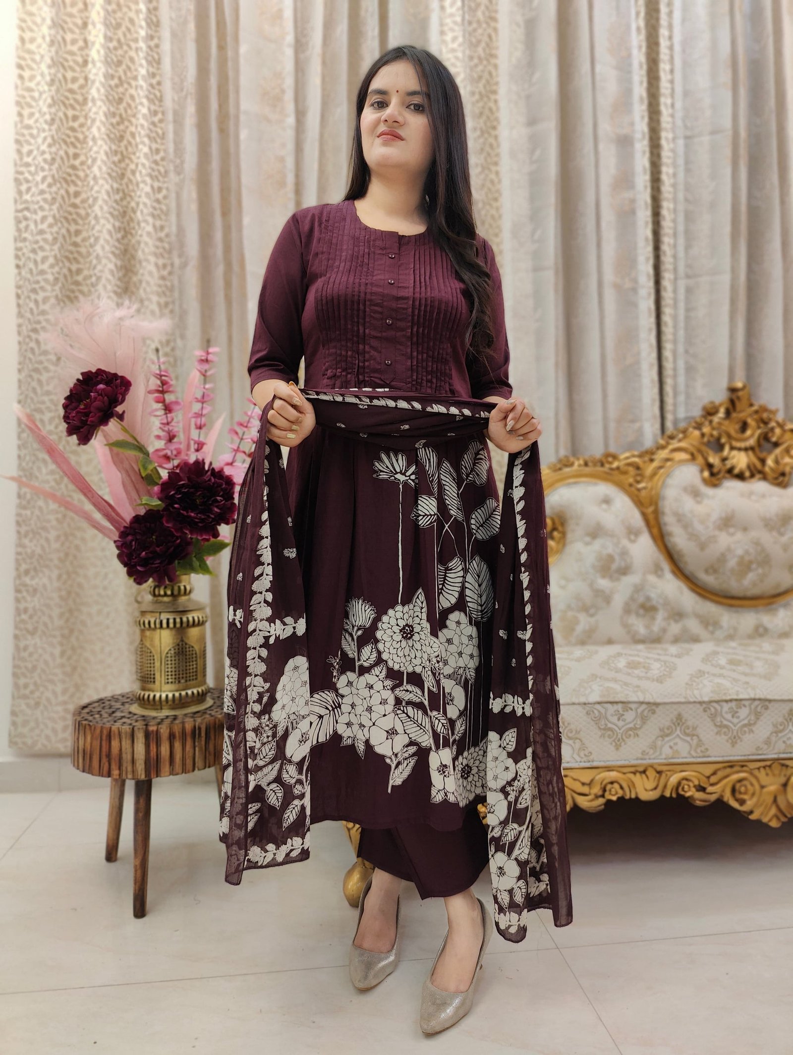 - Kurta Set Fabric: Rayon Blend || Kurta Set Color :- Wine