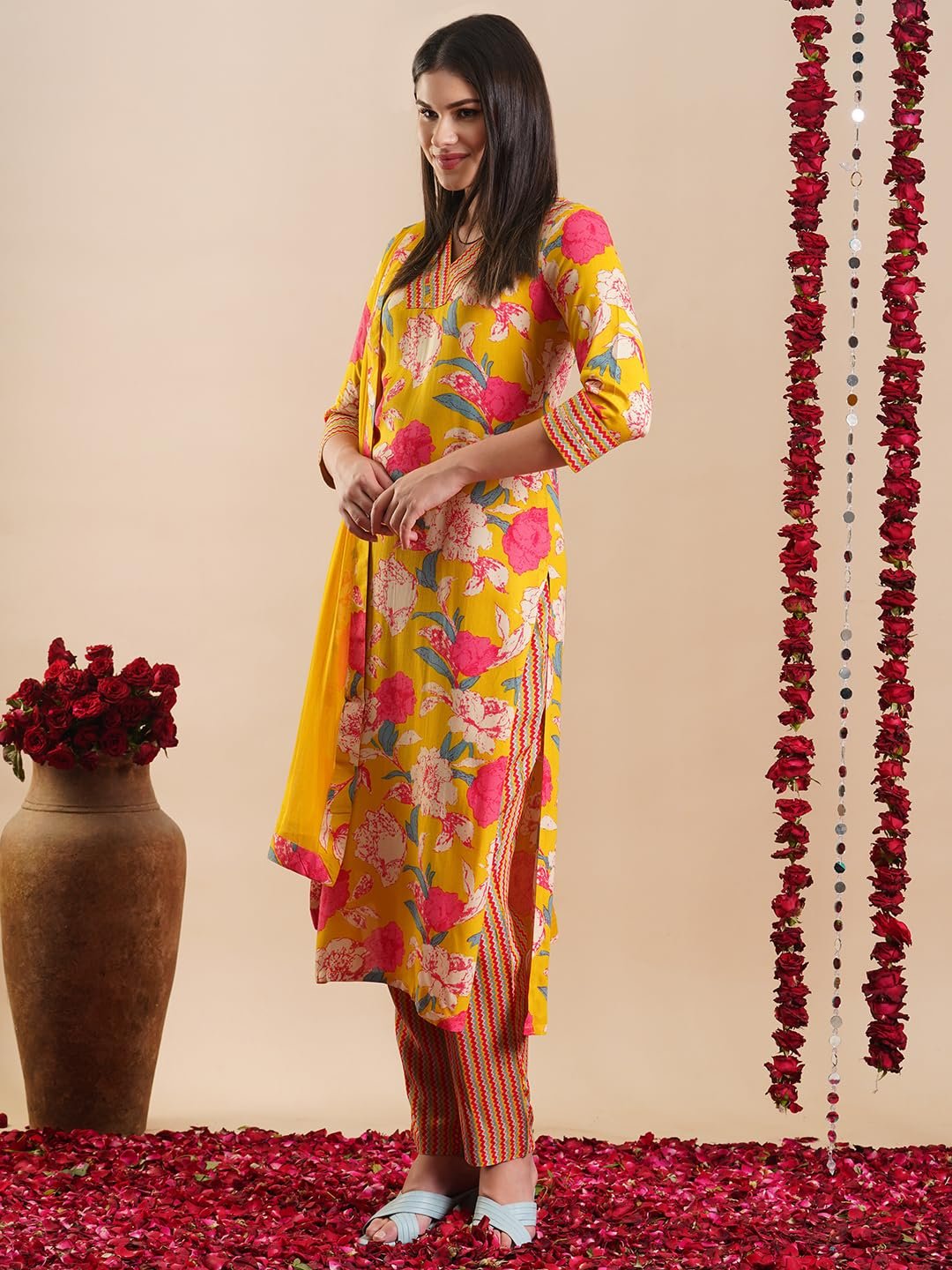 GoSriKi Women’s Rayon Blend Casual Style Kurta With Pant & Dupatta