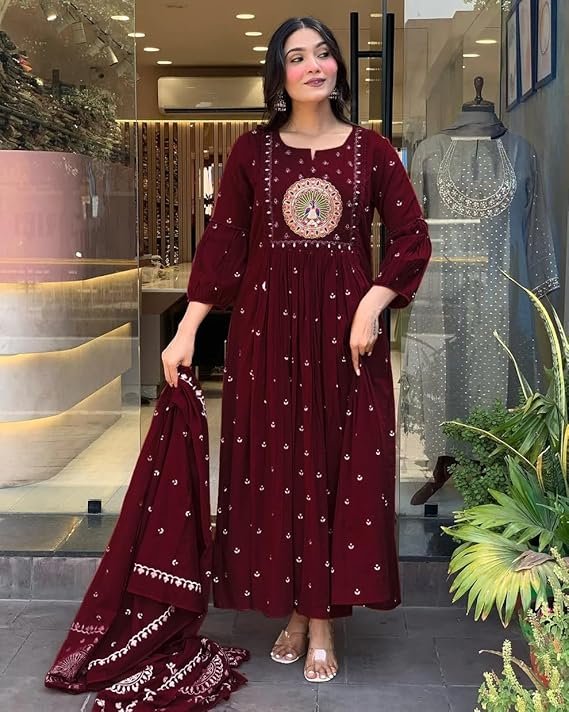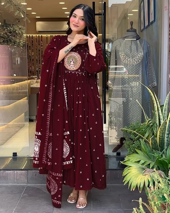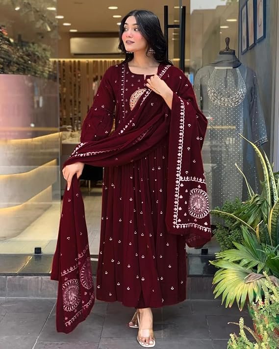 • ELEGANT ANARKALI SILHOUETTE – Flowing Anarkali fit flatters every body type, offering grace and comfort for daily, office, or festive wear.