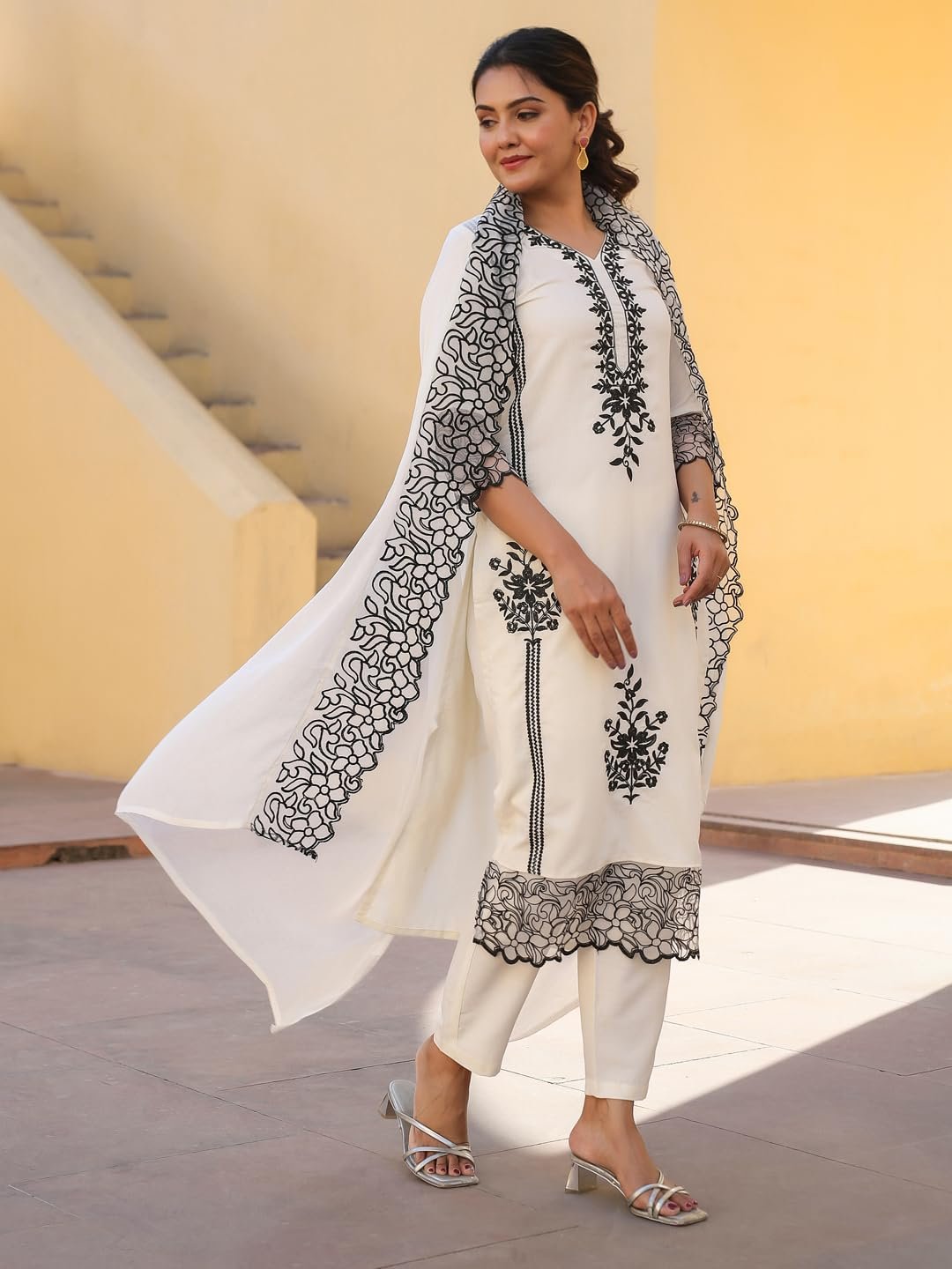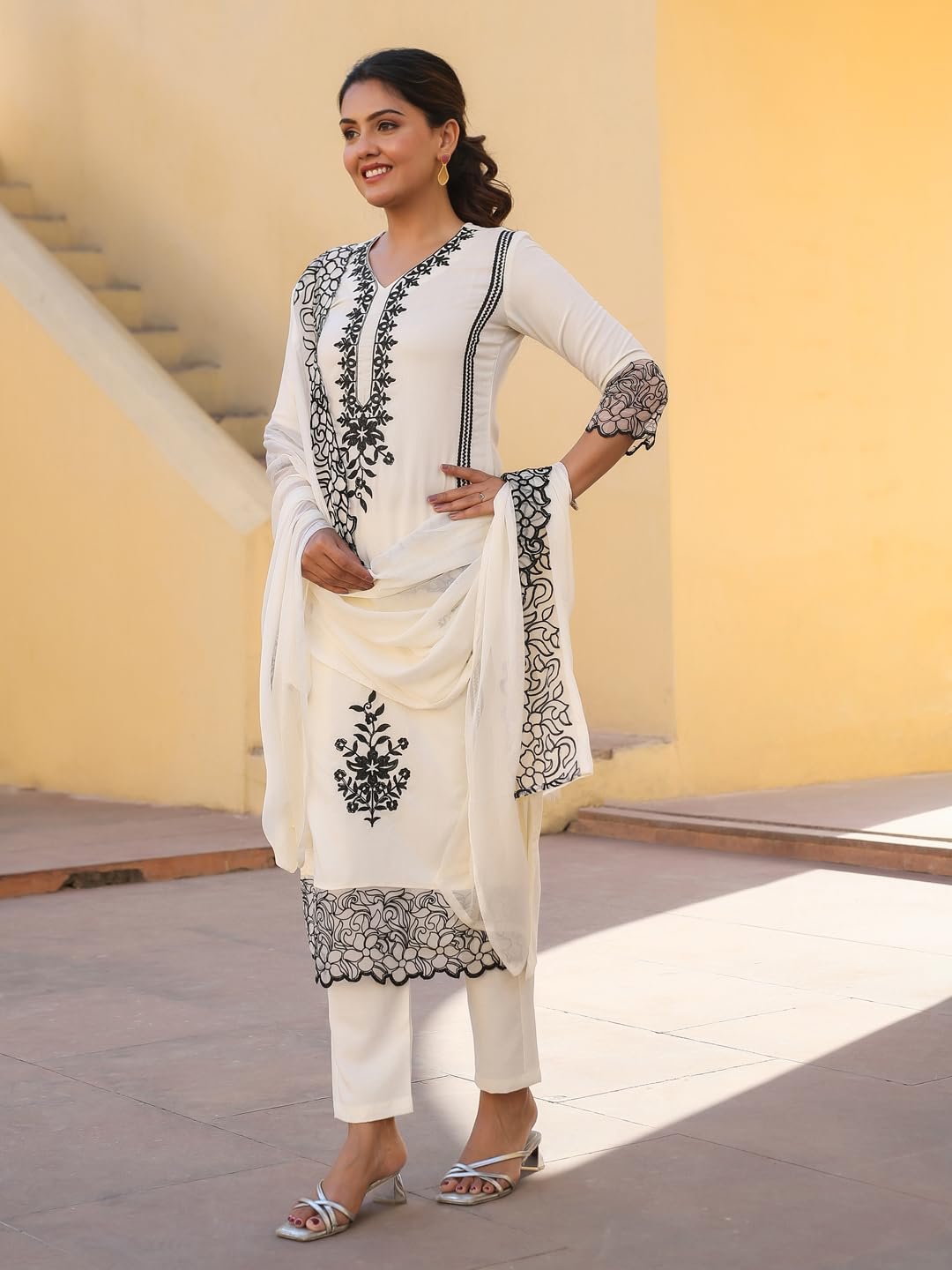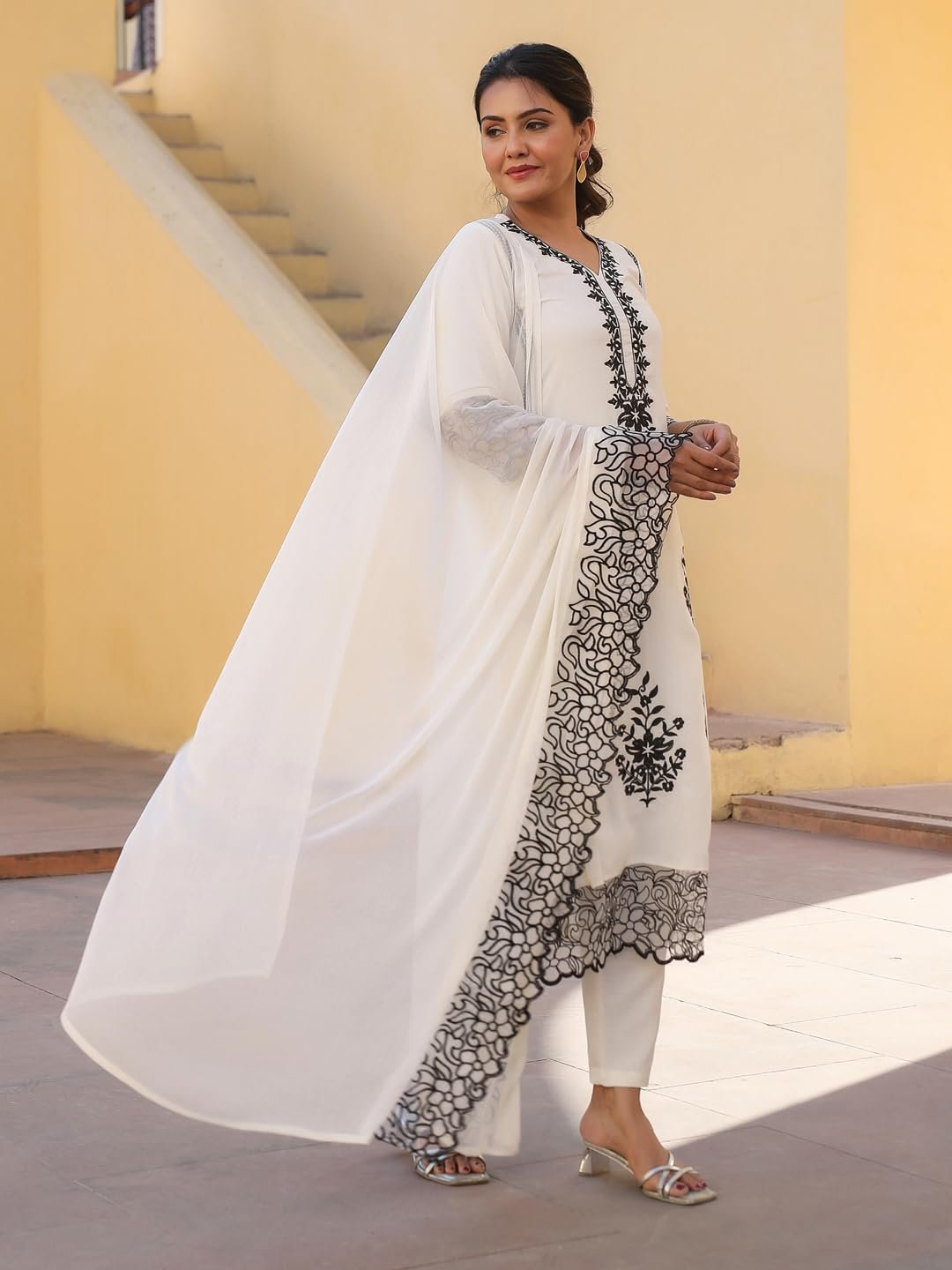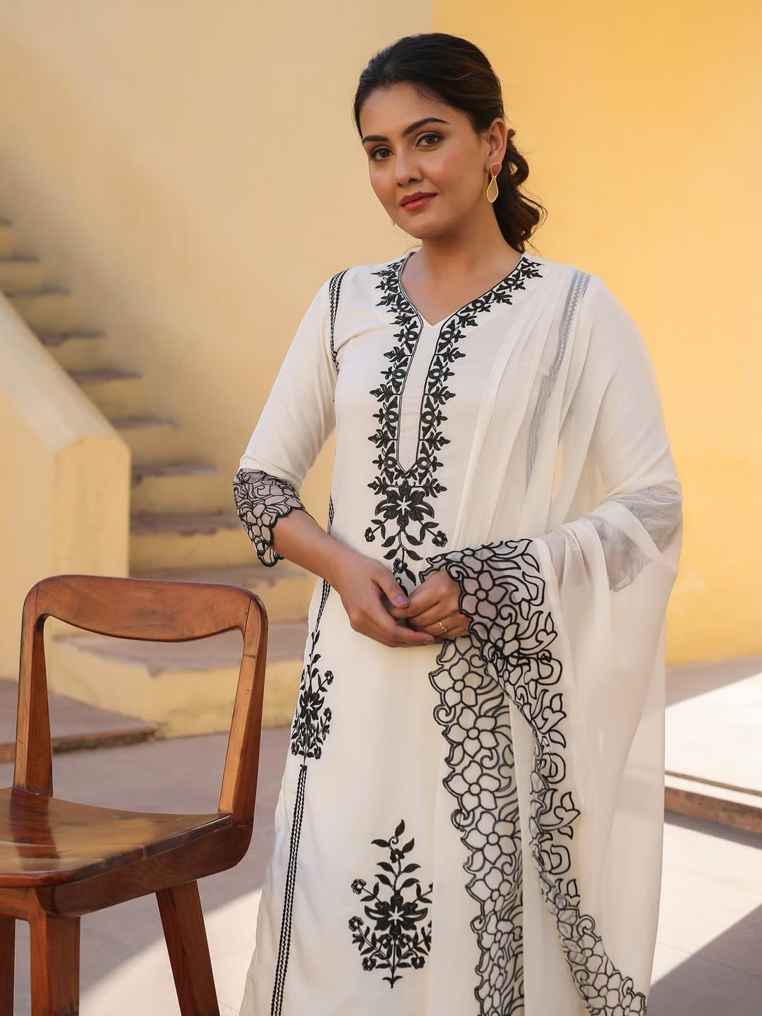 • This set includes: 1 Kurta and 1 Pant with Dupatta || Work :- Embroidered || Neck Style:- V-Neck