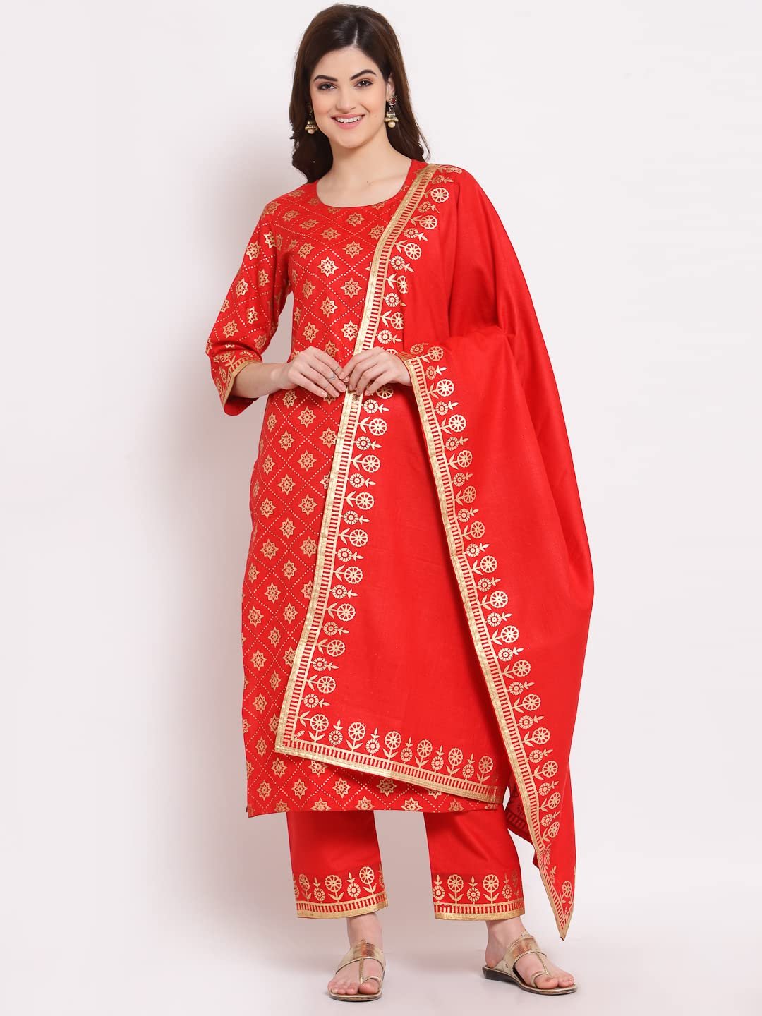- This set includes: 1 Kurta and 1 Pant with Dupatta || Work :- Printed || Neck Style:- Round Neck