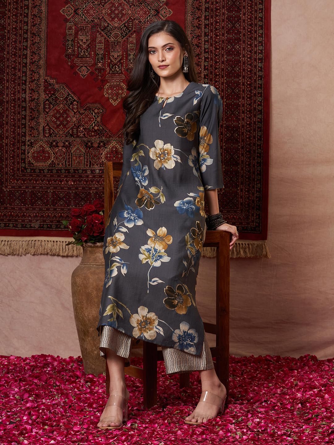 - Kurta Set Fabric: Rayon Blend (Rayon 90% Cotton 10%) || Kurta Set Color :- Grey