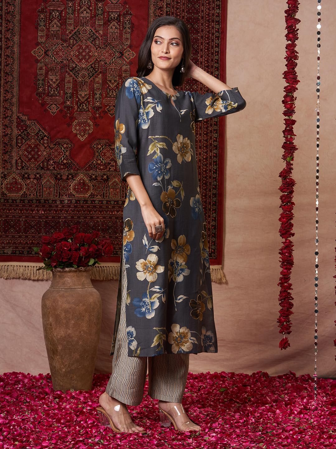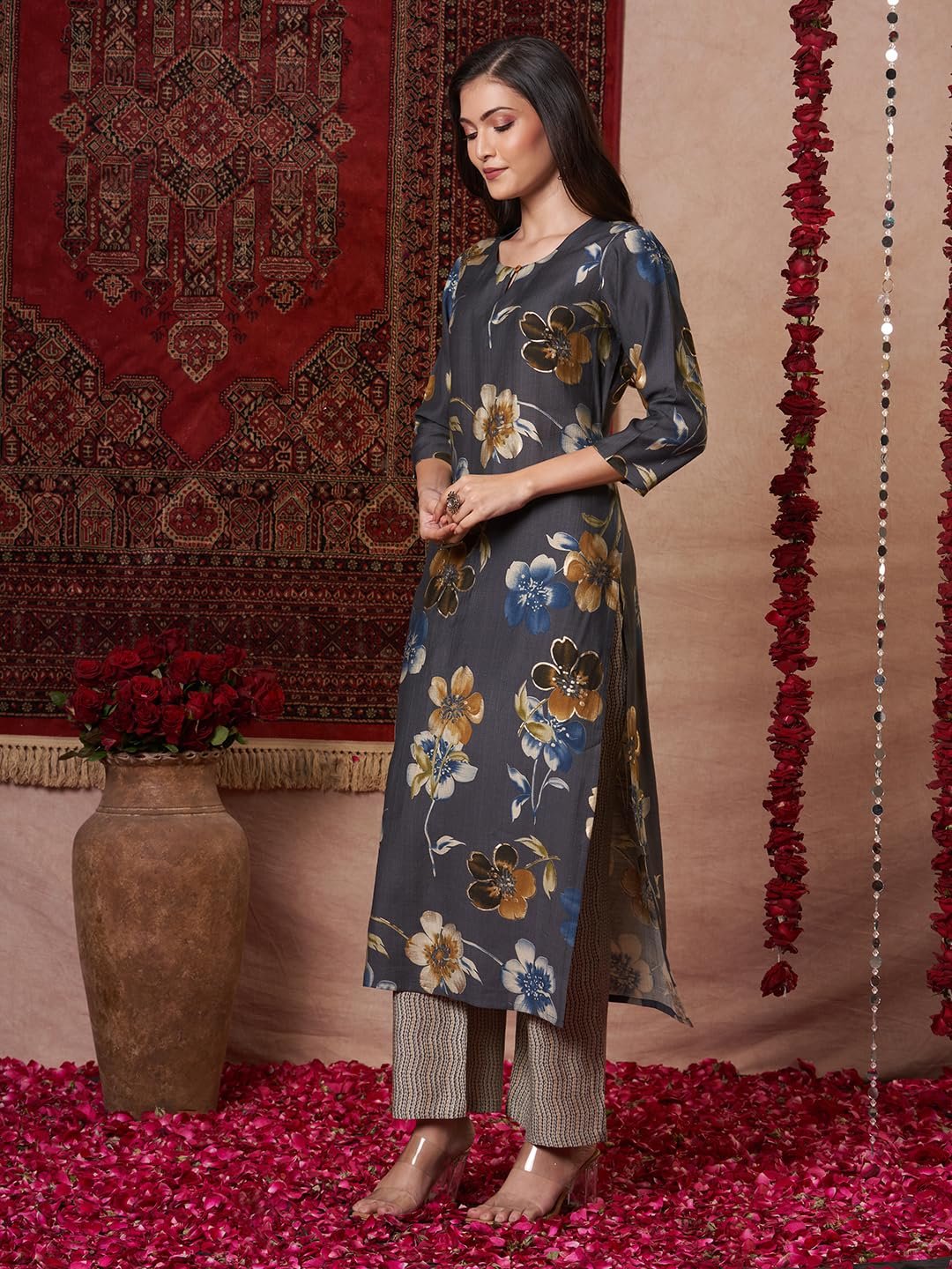 - This set includes: 1 Kurta and 1 Pant || Work :- Printed|| Neck Style:- Round Neck