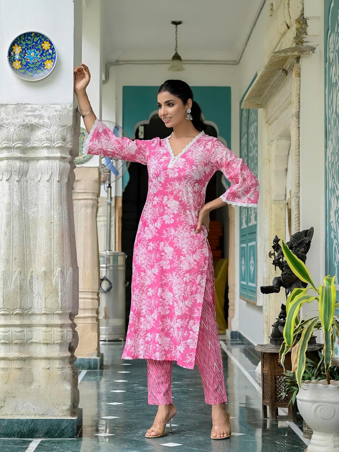 - This set includes: 1 Kurta and 1 Pant|| Work :- Printed || Neck Style:- V-Neck