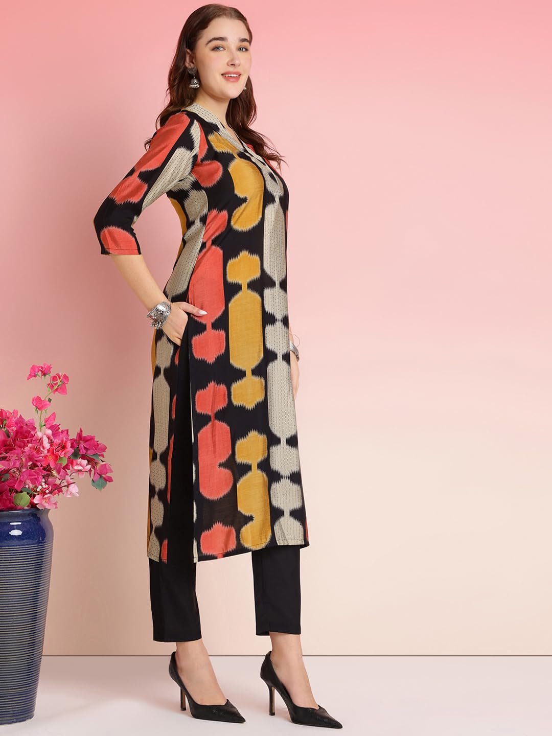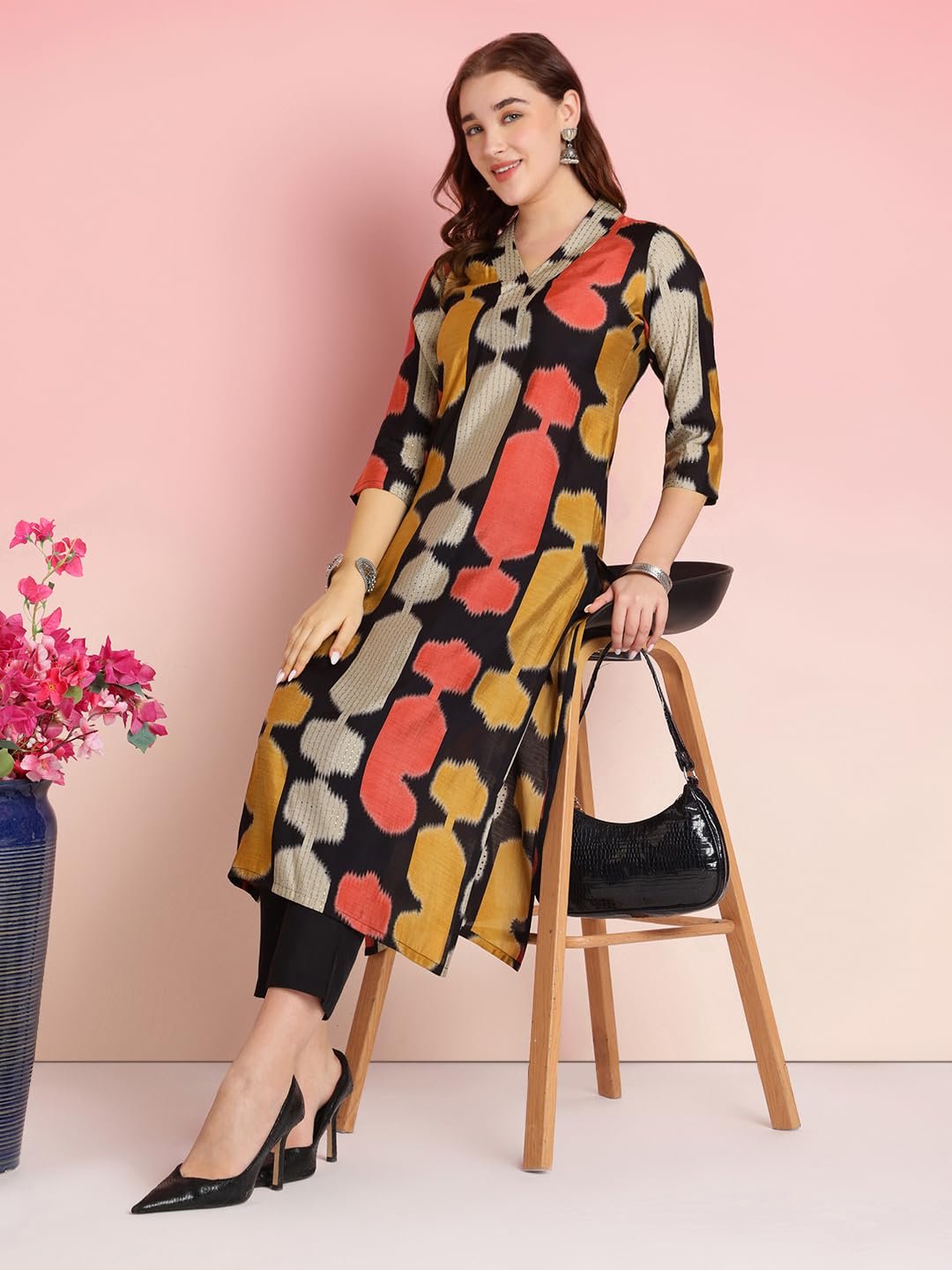 • This set includes: 1 Kurta and 1 Pant || Work :- Printed|| Neck Style:-V-Neck
