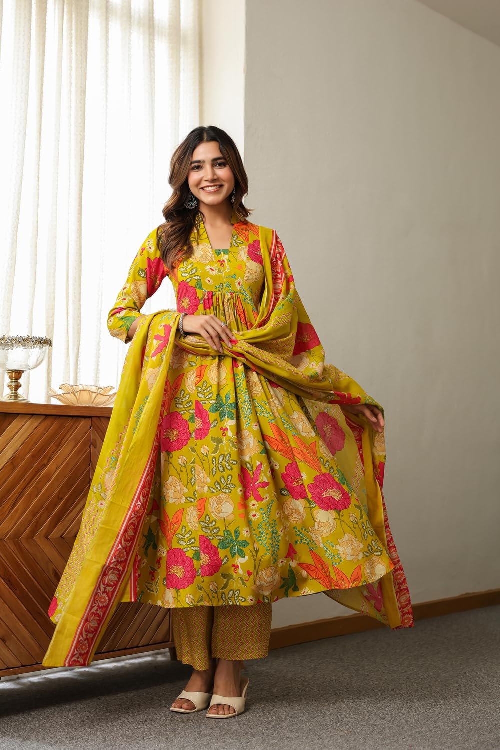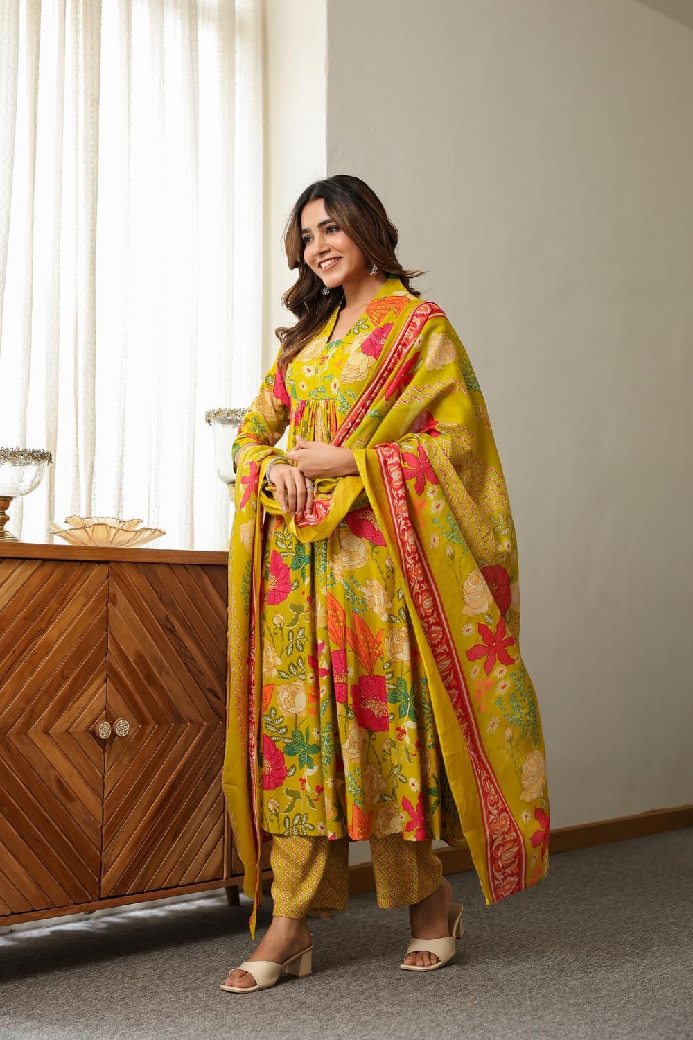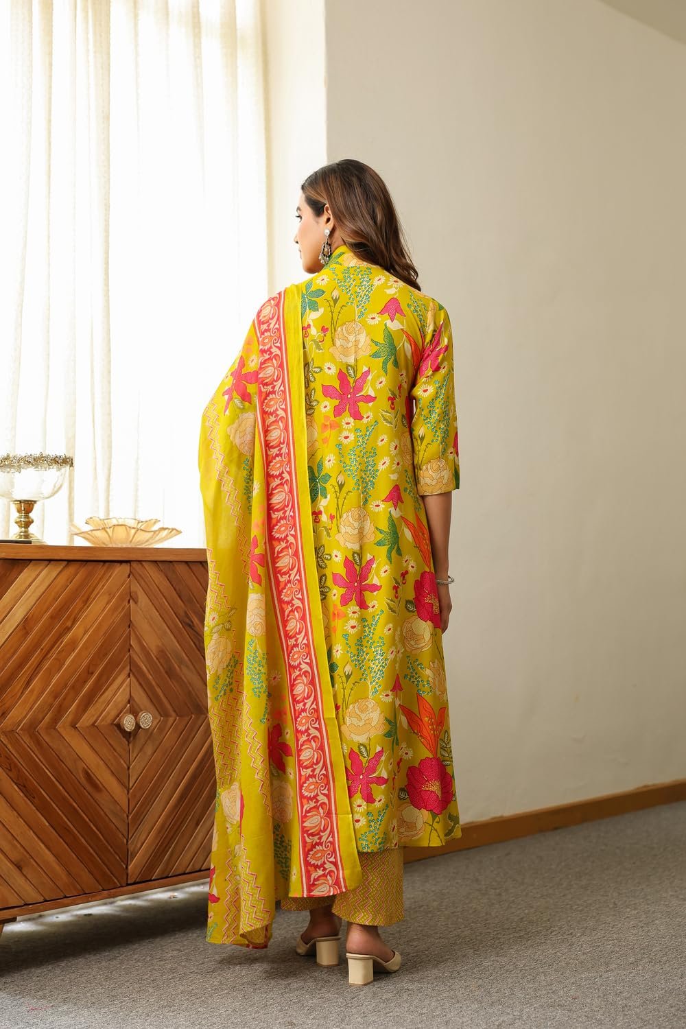 - This set includes: 1 Kurta and 1 Pant with Dupatta || Work :- Printed || Neck Style:- V-Neck ||Care instructions : Dry Clean Only