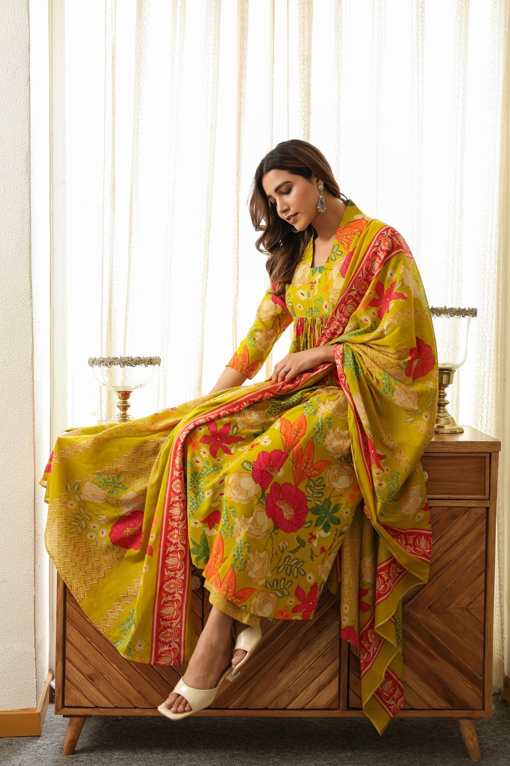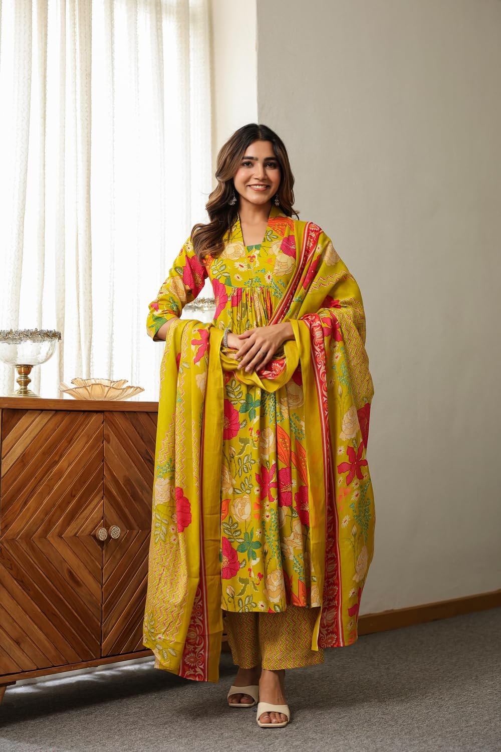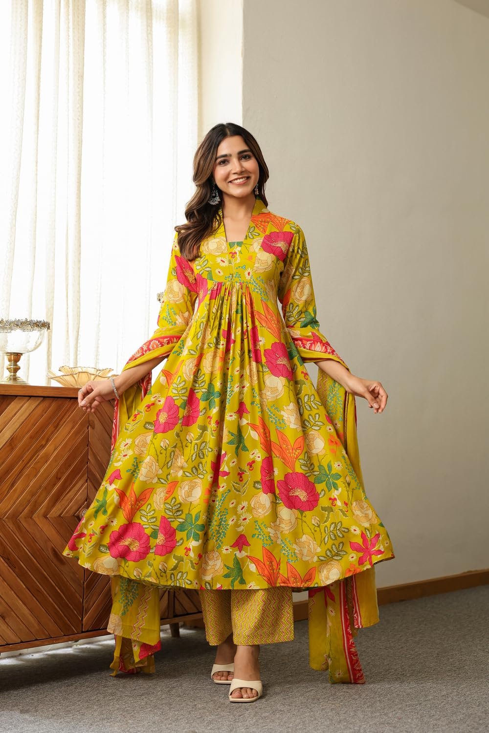 - This set includes: 1 Kurta and 1 Pant with Dupatta || Work :- Printed || Neck Style:- V-Neck ||Care instructions : Dry Clean Only