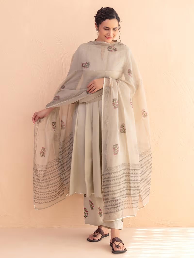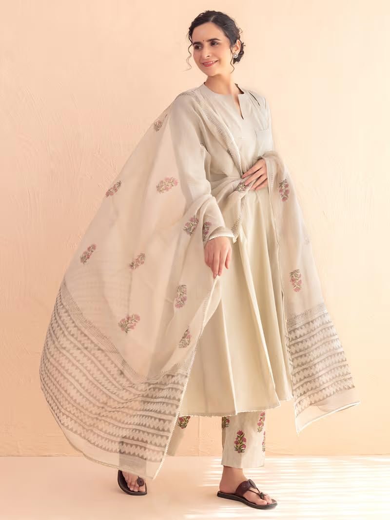 • Comfort-Focused Regular Fit: Designed for everyday comfort, the structure of this anarkali kurta pant dupatta set allows easy wear while maintaining a presentable and refined look.