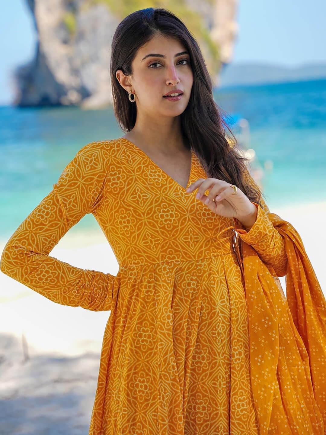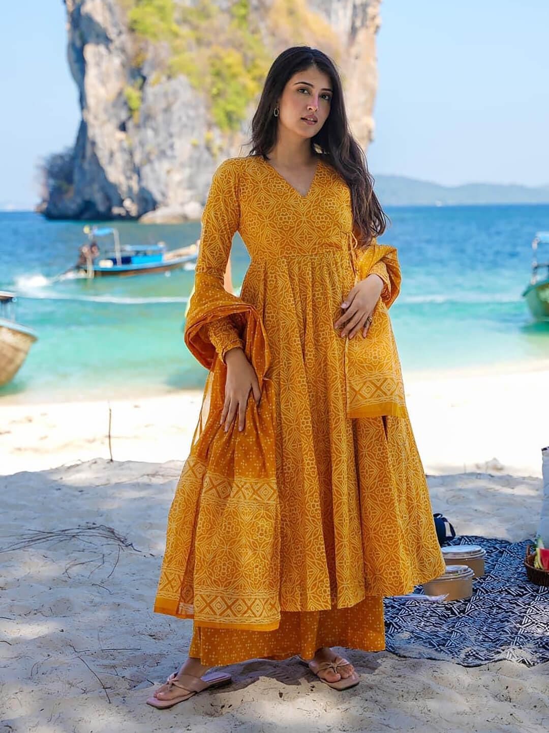 - This set includes: 1 Kurta and 1 Pant with Dupatta || Work :- Printed || Neck Style:- V-Neck