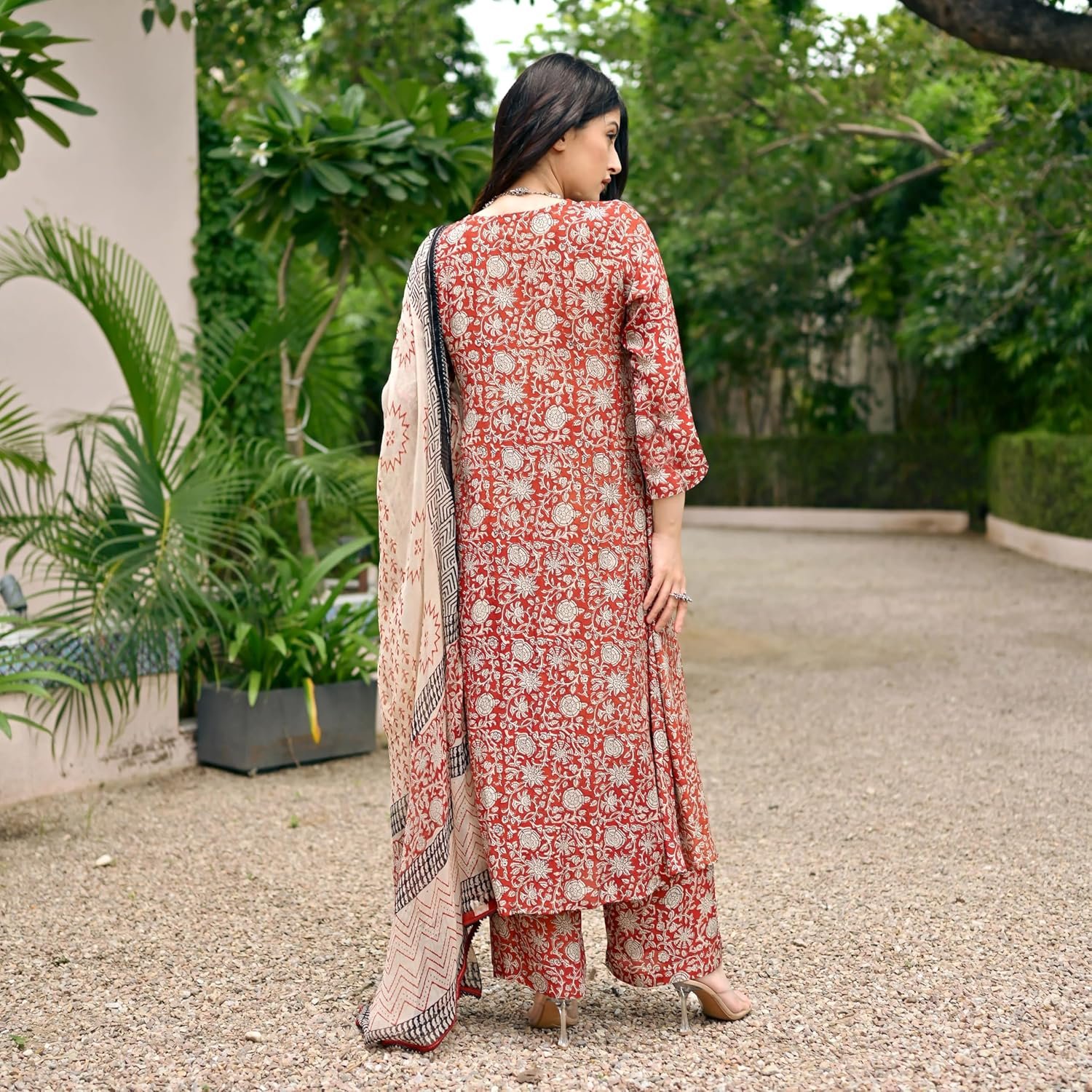 GoSriKi Women’s Rayon Viscose Anarkali Printed Kurta with Pant & Dupatta