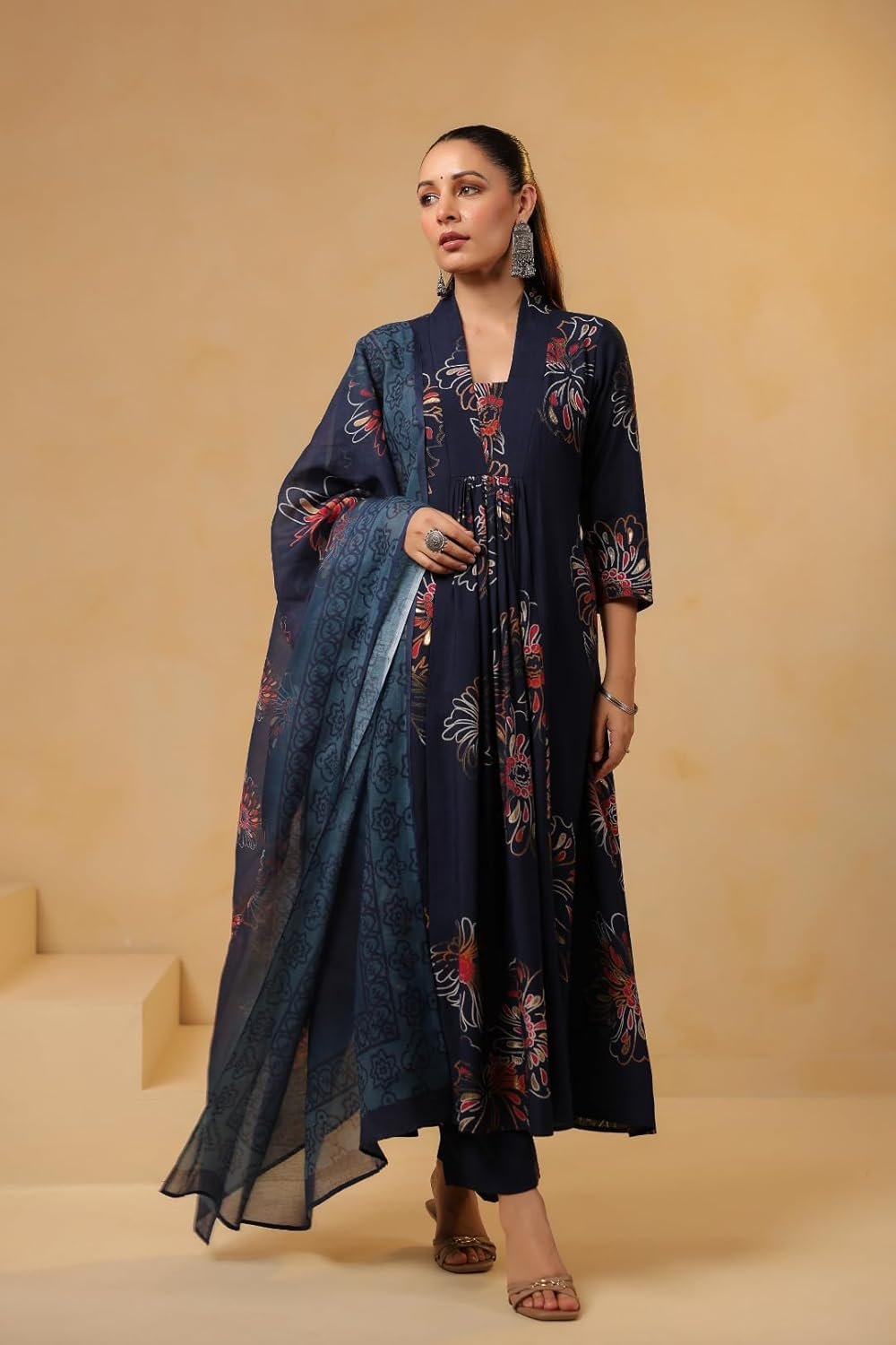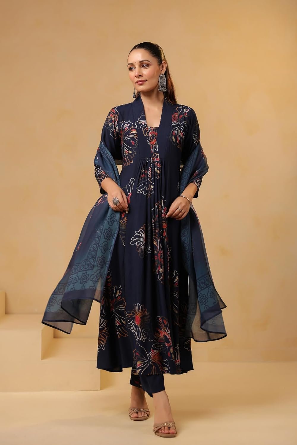 • This set includes 1 kurta, 1 pant with dupatta. || Work: – Printed || Neck Style: V-Neck || Care instructions : Dry Clean Only