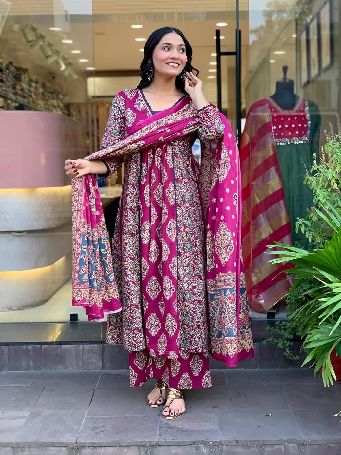 - Style: Anarkali || Length: Calf Length || Sleeves: Long Sleeve || Size Chart—Kurta – S-36 in, M-38 in , L-40 in , XL-42 in , XXL-44 in, Pant: S-28 in, M-30 in , L-32 in, XL-34 in, XXL-36 in, For more, please refer to the size chart below.