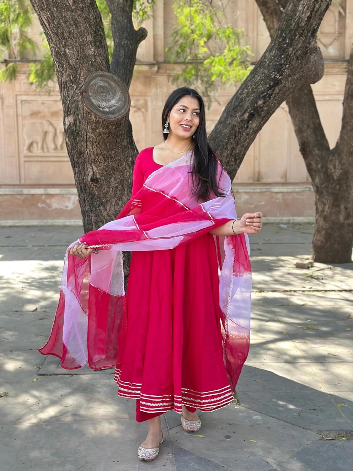 Type: Women’s Rayon Viscose Anarkali Solid Kurta with Pant & Dupatta