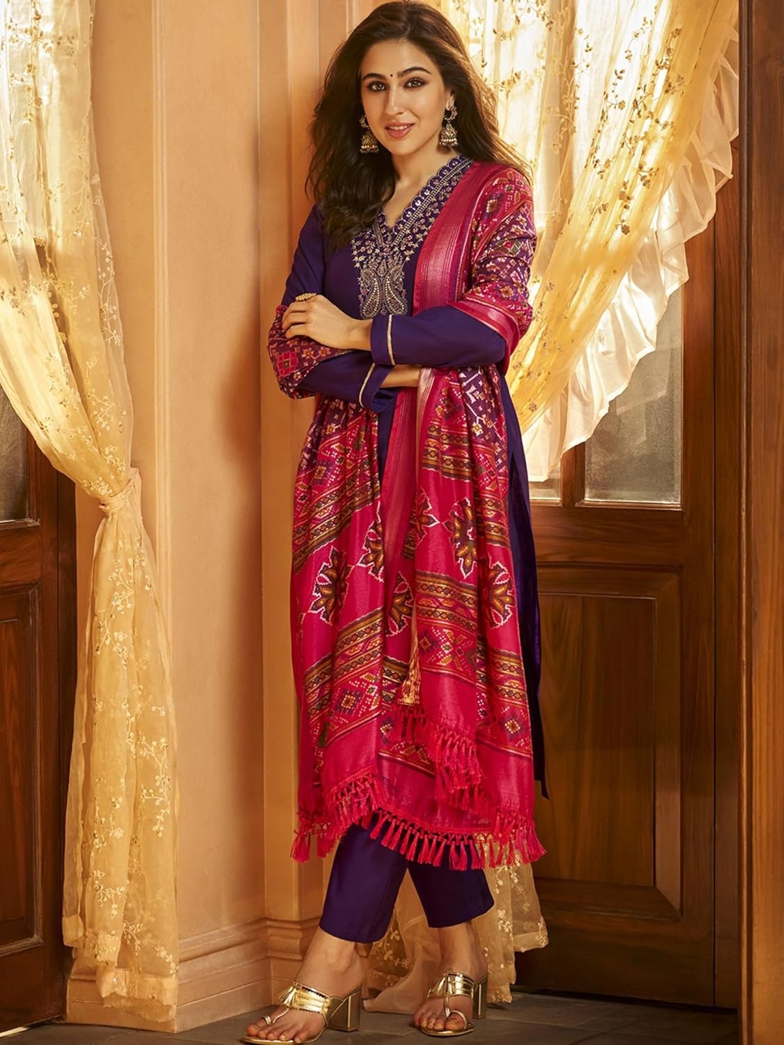 - This set includes: 1 Kurta and 1 Pant with Dupatta || Work :- Dupatta Printed & Neck Embroidered Only || Neck Style:- V-Neck