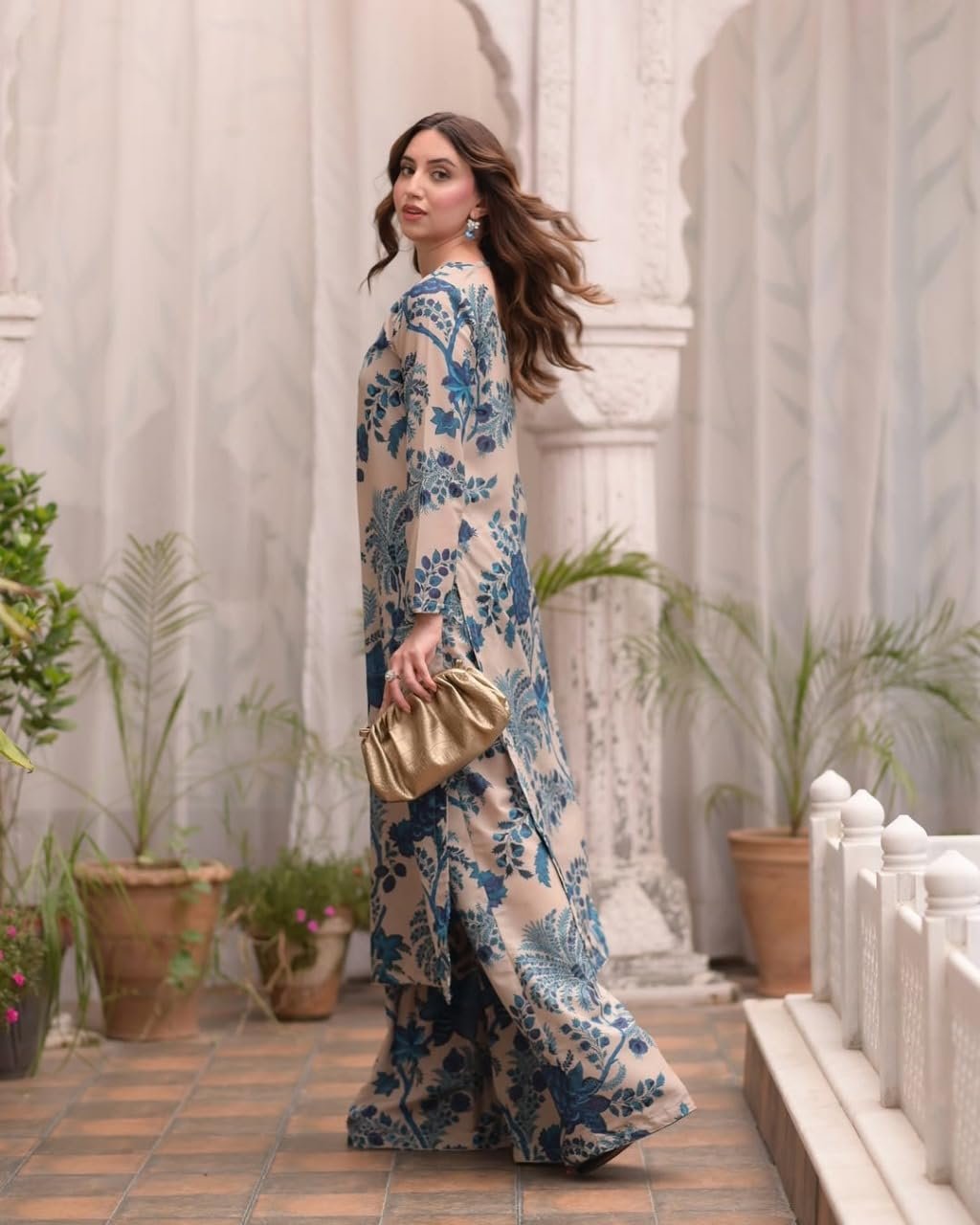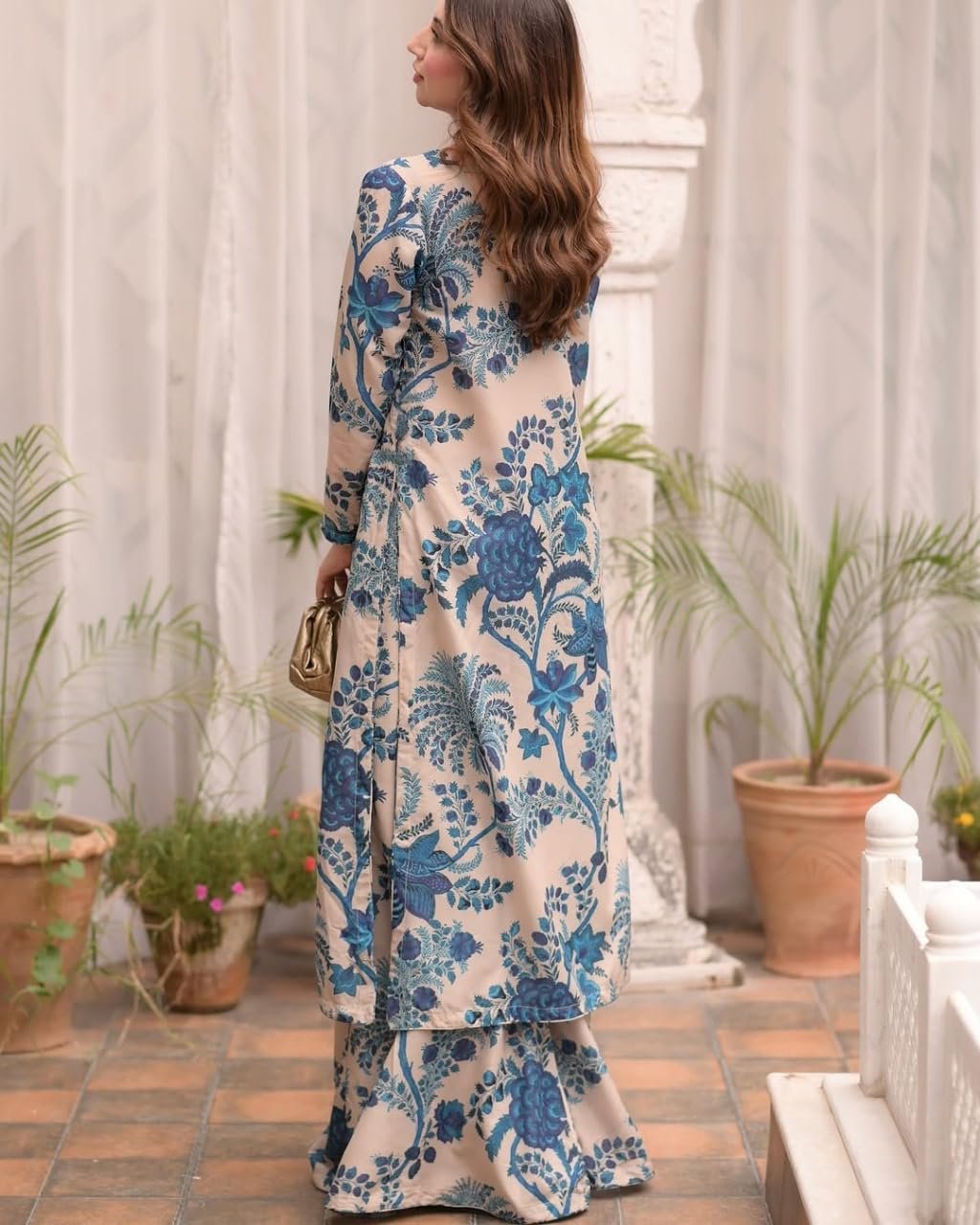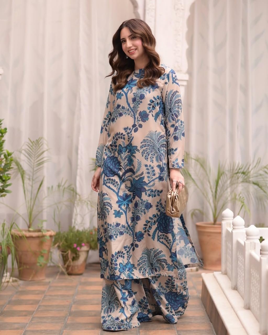 • This set includes 1 Kurta and 1 palazzo. || Work: – Printed || Neck Style: High Neck||Care instructions: Dry Clean Only