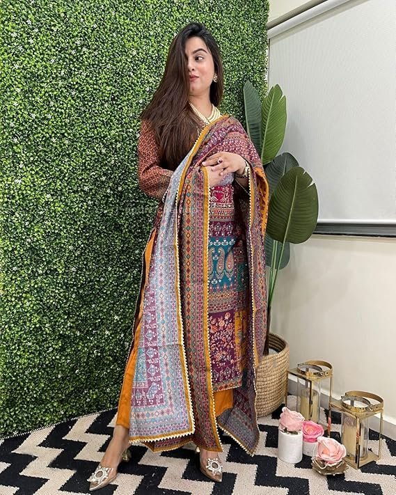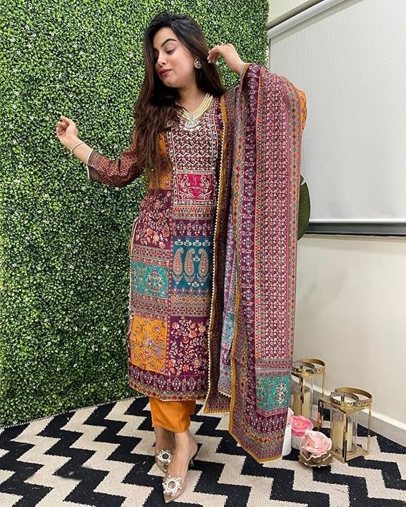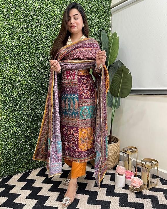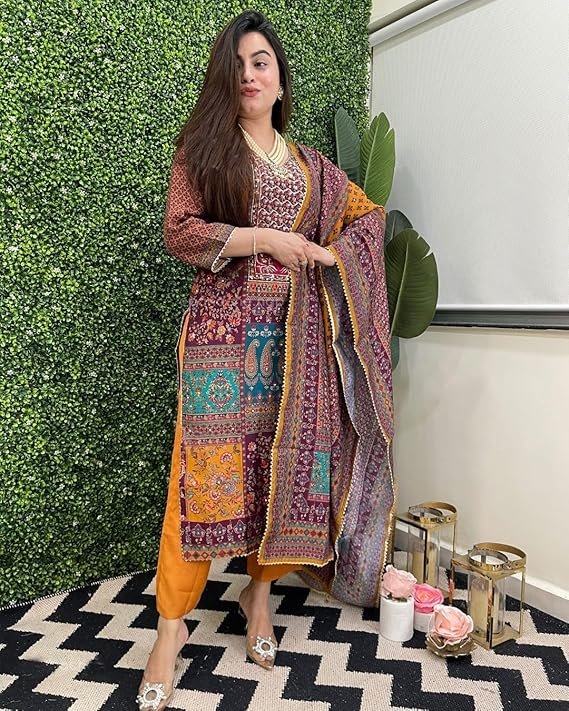 - This set includes: 1 Kurta and 1 Pant with Dupatta || Work :- Printed || Neck Style:- Round Neck