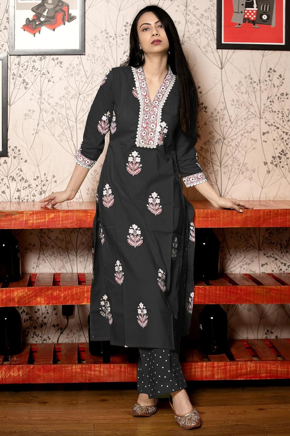 - Style: Straight || Length: Calf Length || Sleeves: 3/4 Sleeves || Size Chart- Kurta-S-36 in, M-38 in , L-40 in , XL-42 in , XXL-44 in,Pant :- S-28 in, M-30 in , L-32 in, XL- 34 in , XXL- 36 in,For More Please refer to the size Chart below.