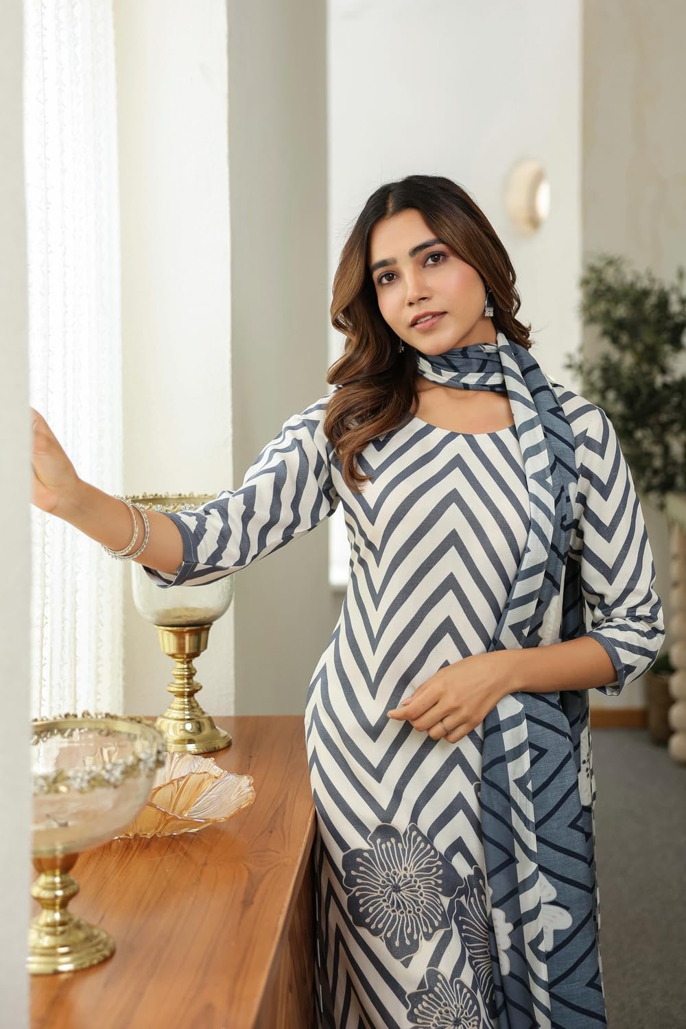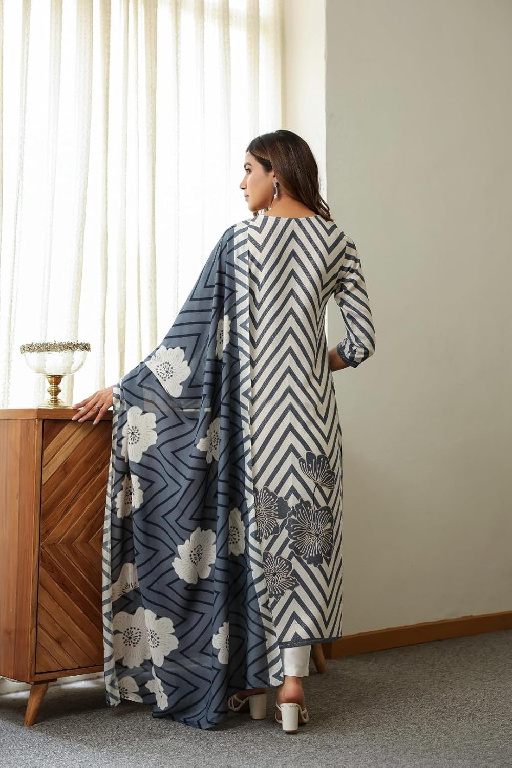 - This set includes 1 Kurta and 1 Pant with dupatta. Work: Printed || Neck Style: Round Neck ||Care instructions: Dry Clean Only