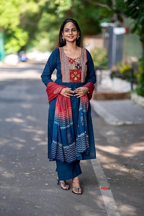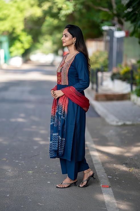 - This set includes 1 kurta and 1 pant with dupatta. || Work: Neck Printed, Dupatta-Printed || Neck Style: – Round-Neck
