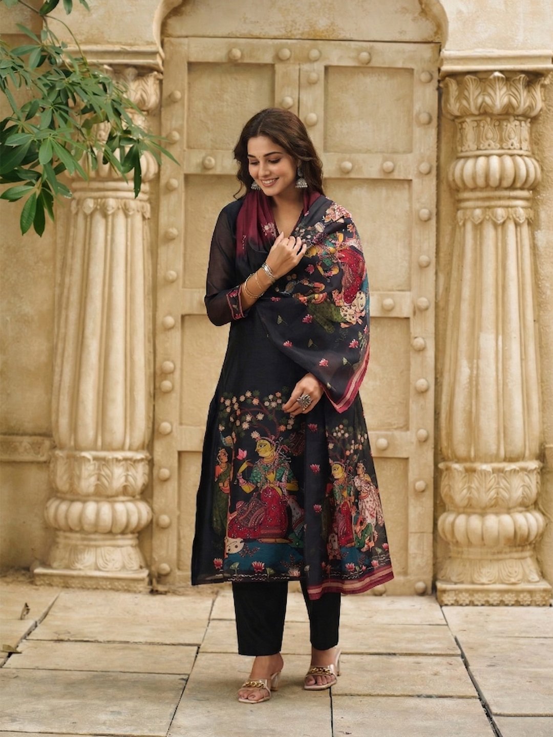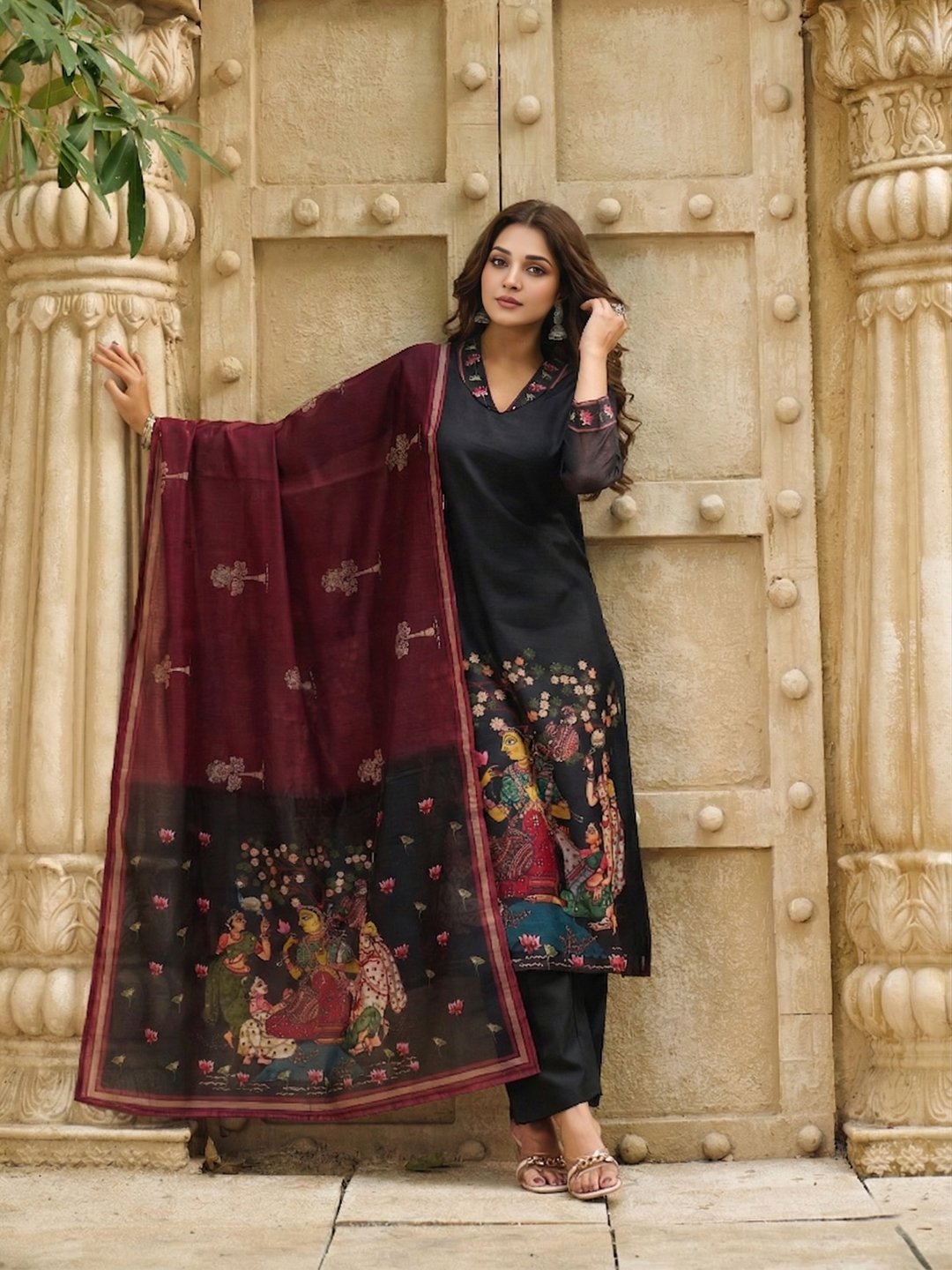- This set includes 1 kurta and 1 pant with dupatta work. – Printed || Neck Style: – V-Neck || Care instructions: Dry Clean Only