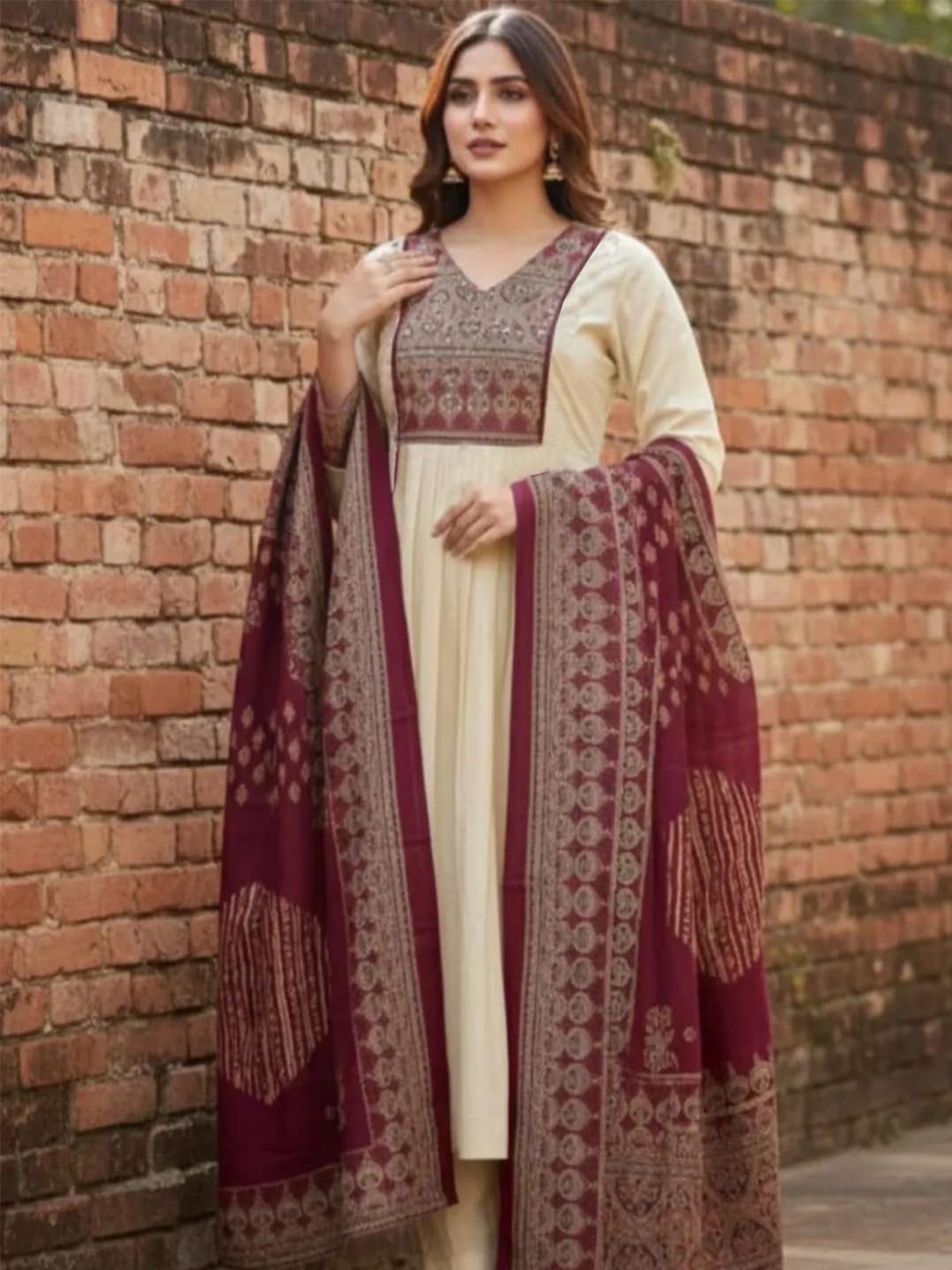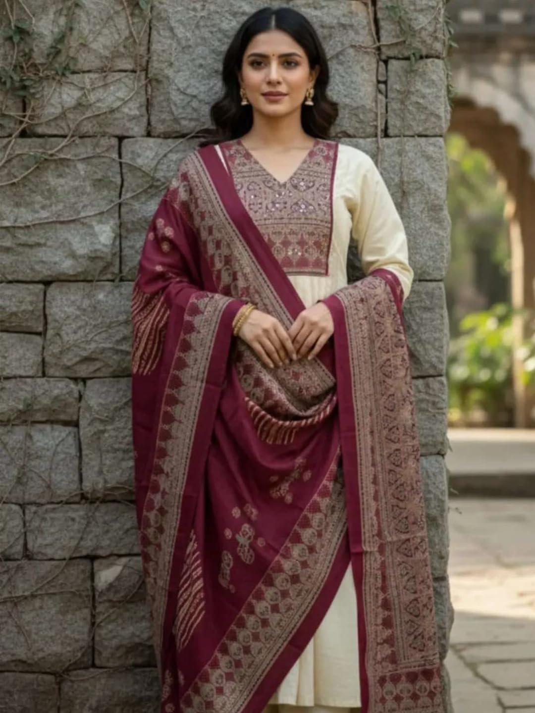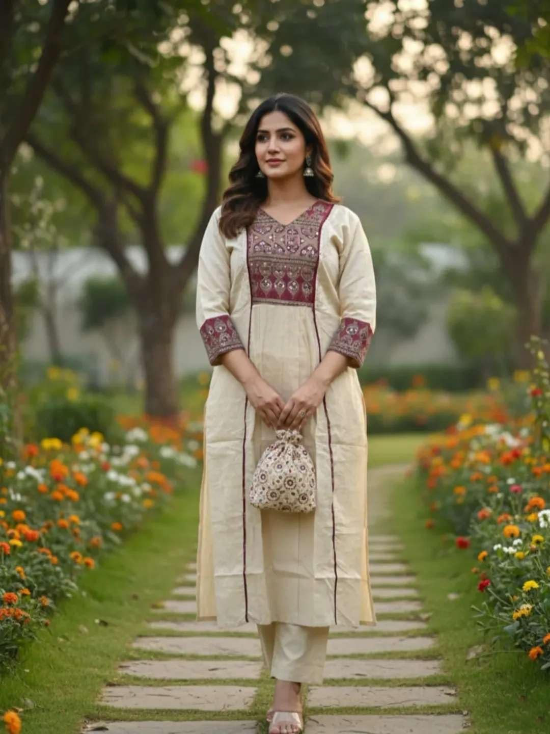 - Kurta Set Fabric: Rayon Viscose (Rayon Viscose 100%) || Kurta Set Color: Cream