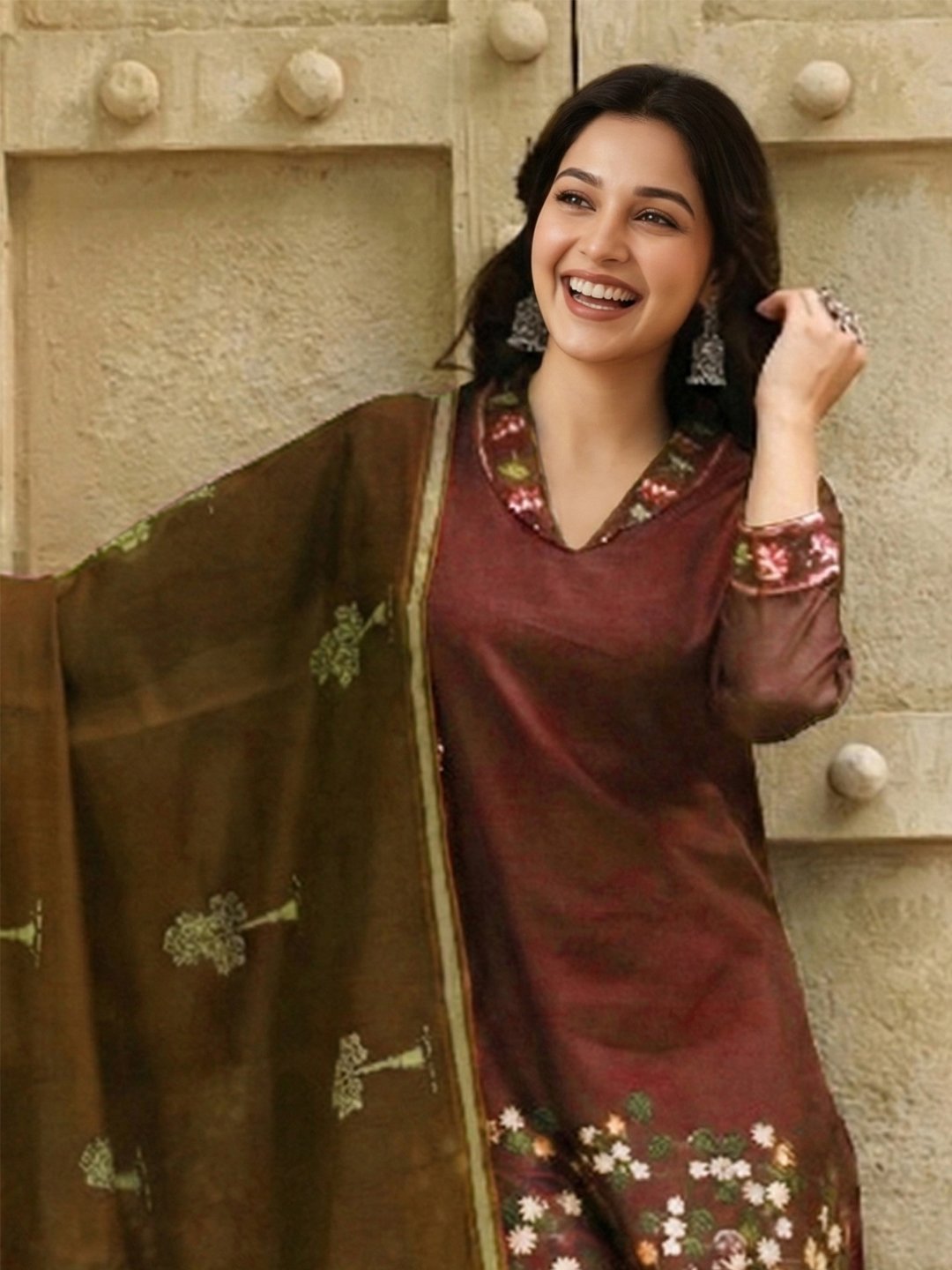 • Kurta Set Fabric: Rayon Viscose (Rayon Viscose 100%) || Kurta Set Color: Brown