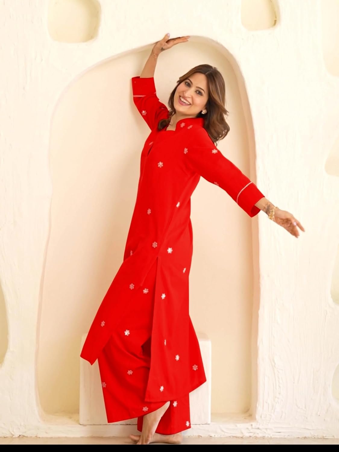 • This set includes: 1 Kurta and 1 Palazzo || Work :- Embroidered|| Neck Style:- V-Neck||Care instructions : Dry Clean Only