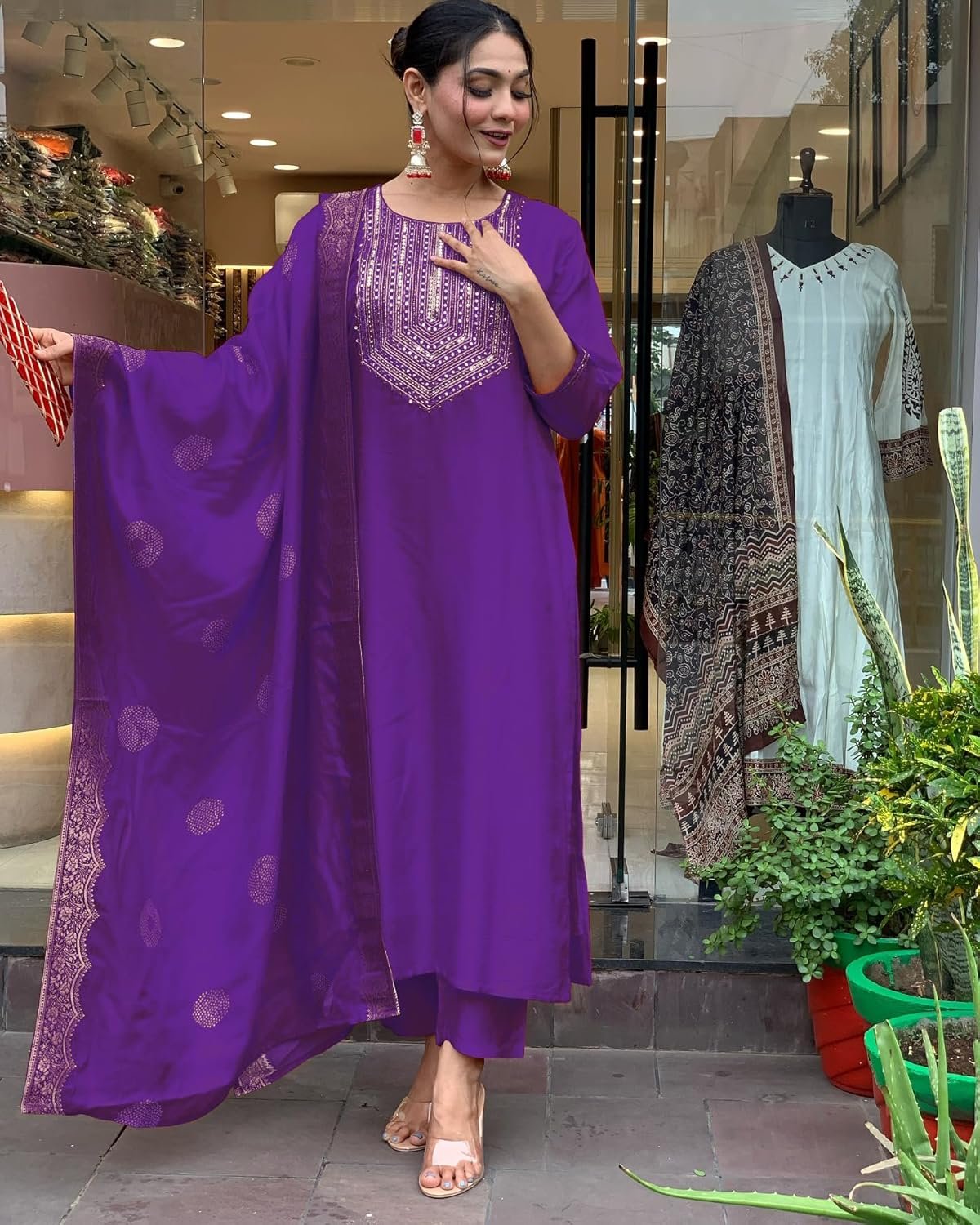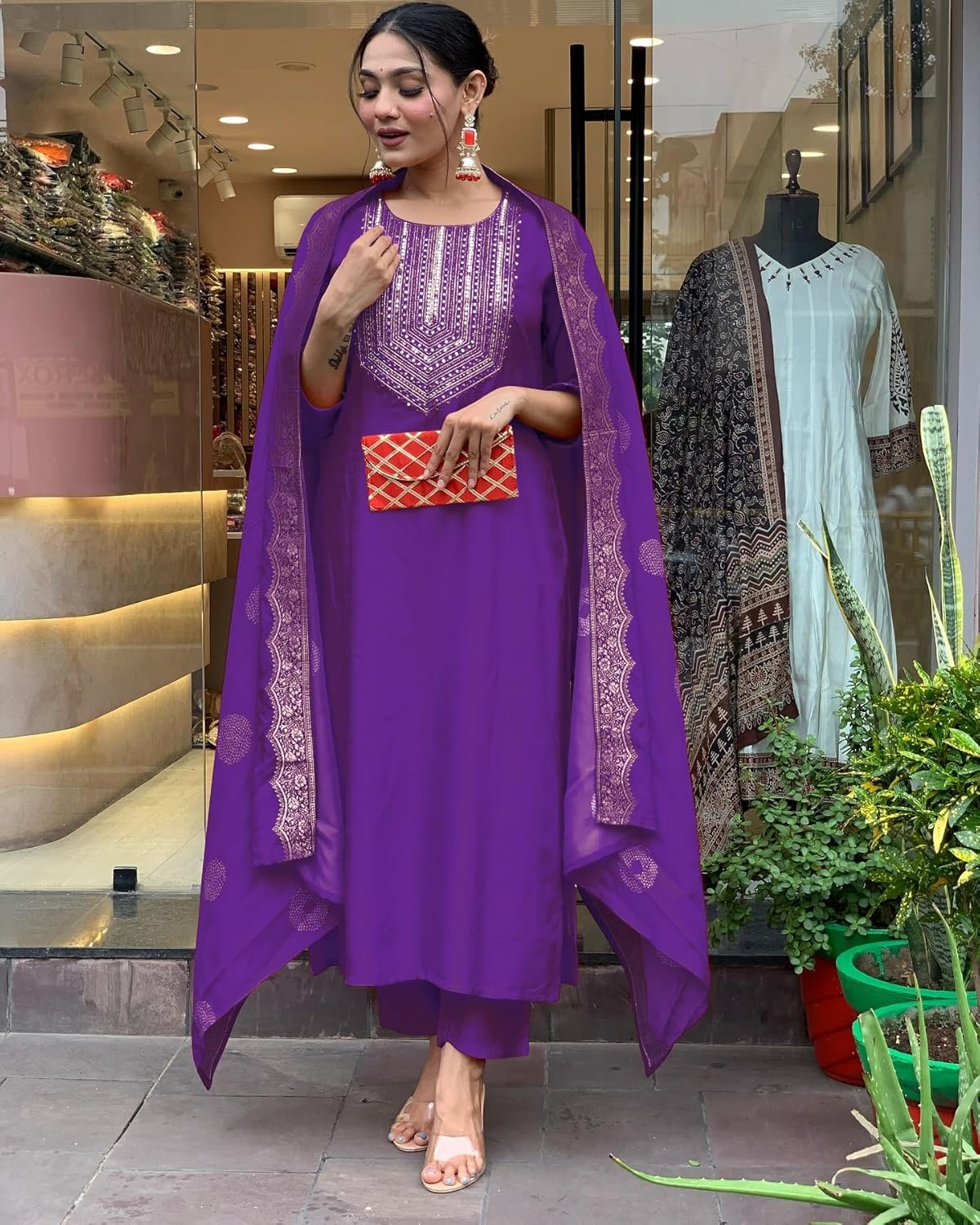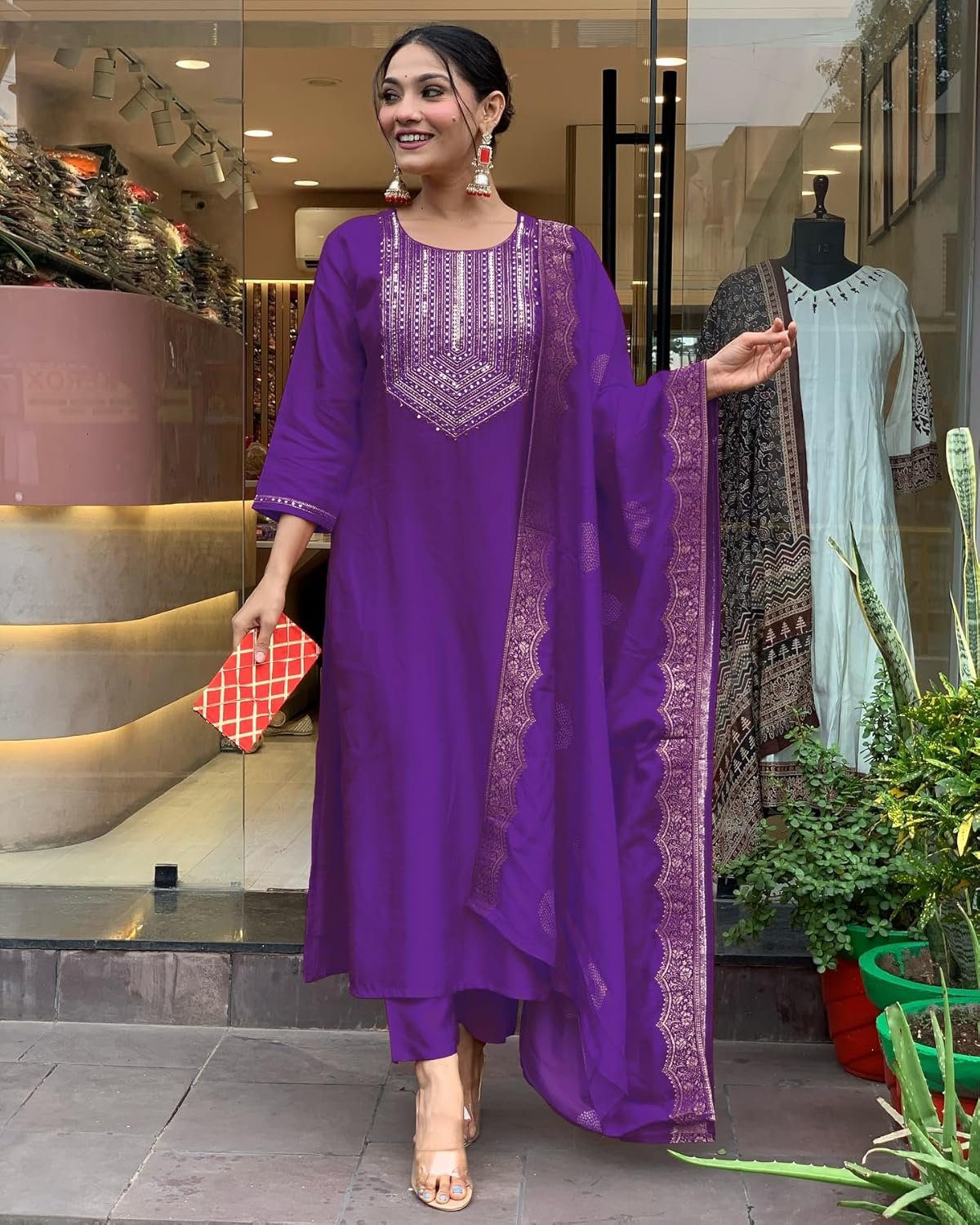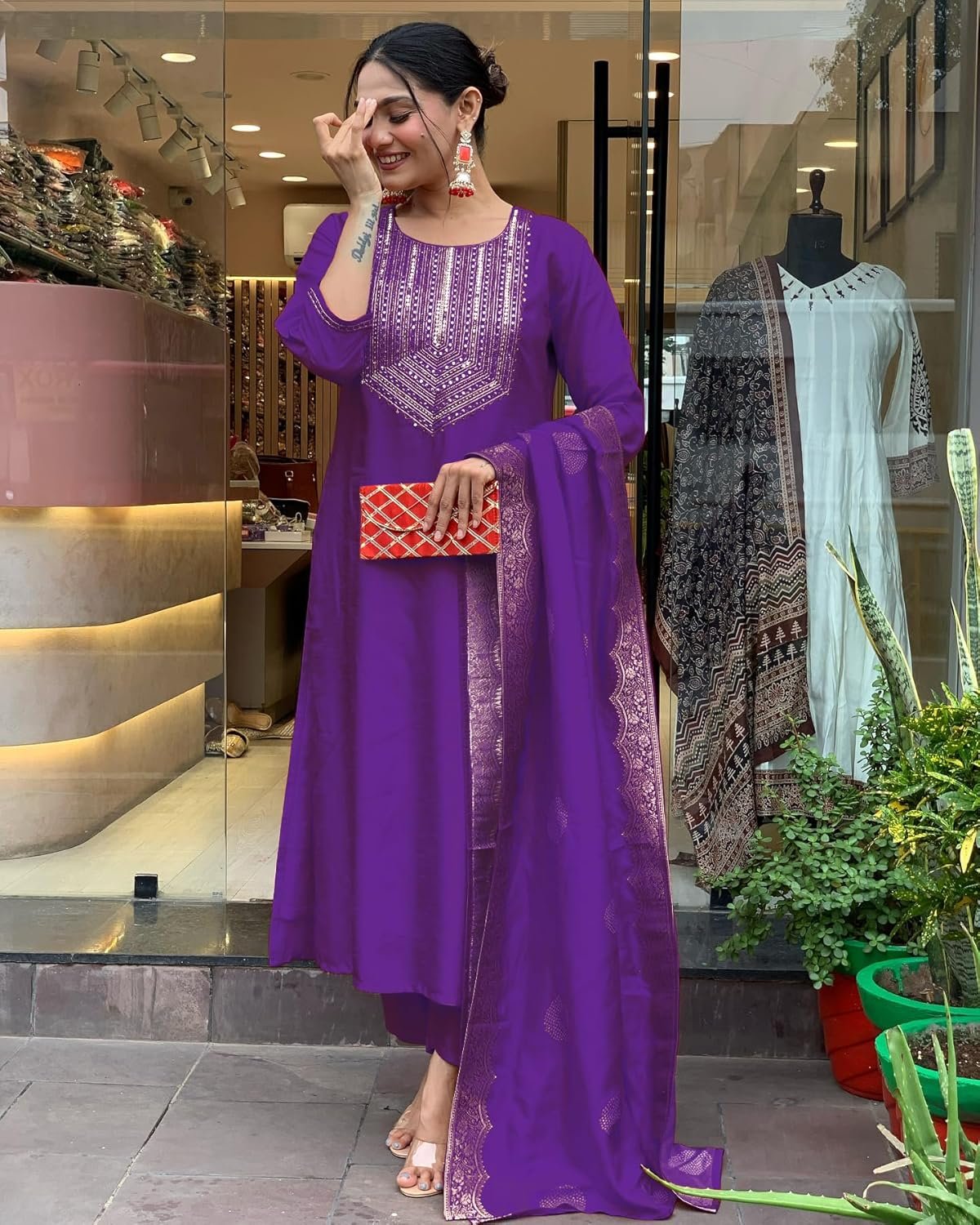 • This set includes: 1 Kurta and 1 Pant with Dupatta || Work :- Neck Embroidered Only & Dupatta Printed || Neck Style:- Round Neck