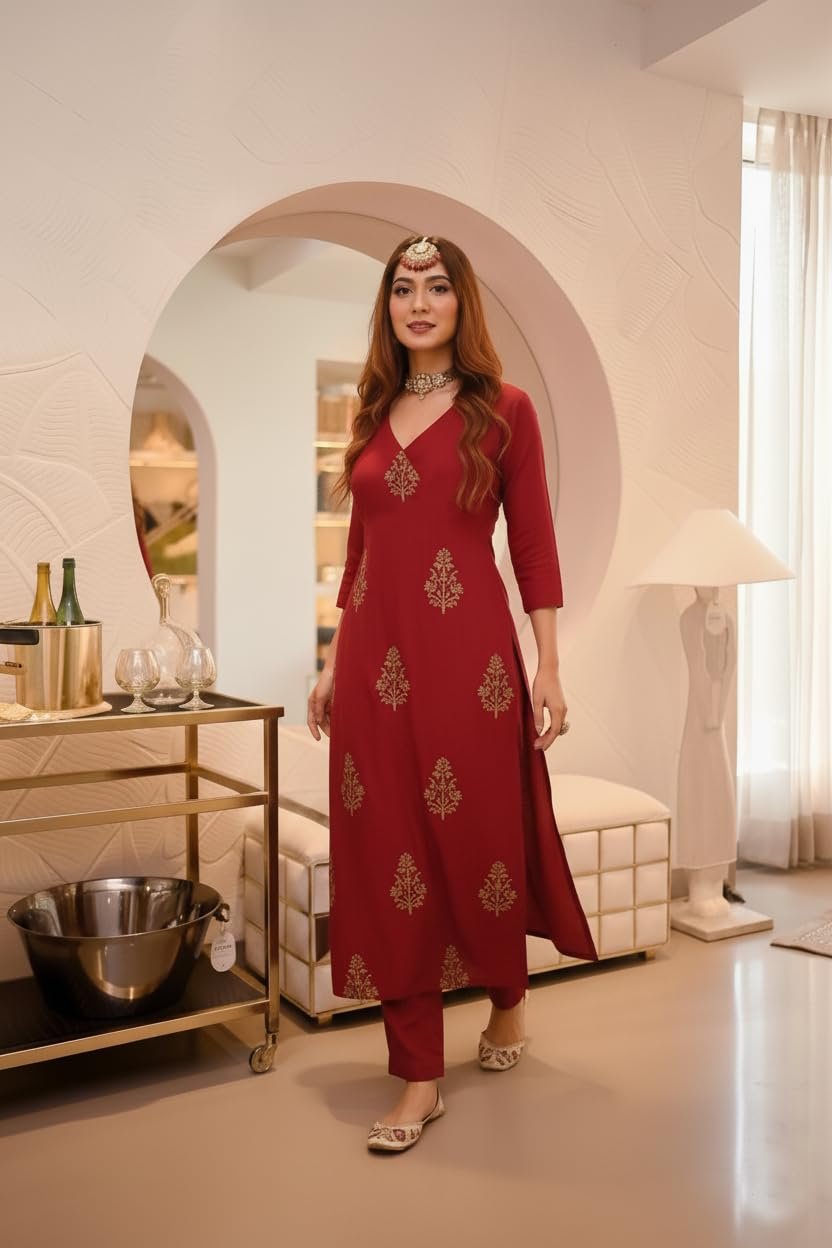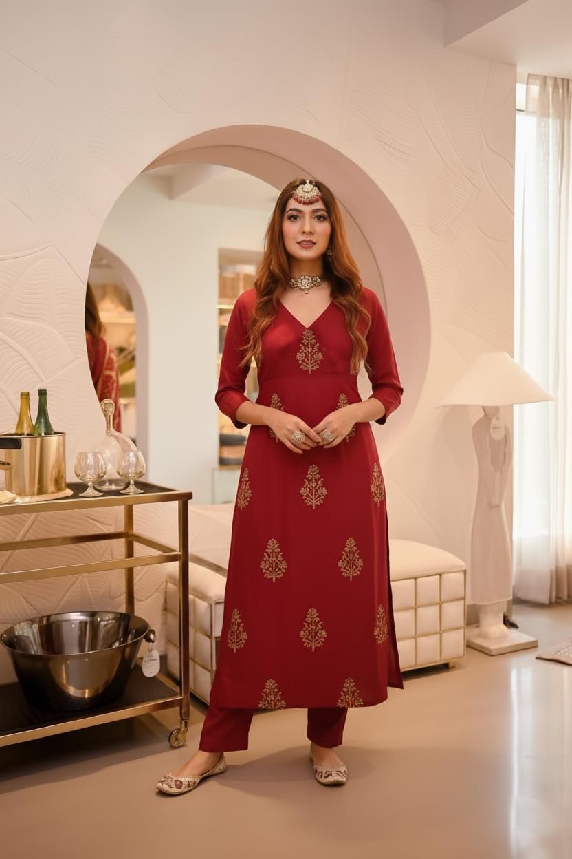 • Kurta Set Fabric: Rayon Viscose (Rayon Viscose 100%) || Kurta Set Color: Red