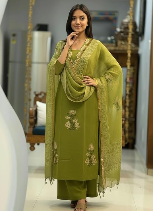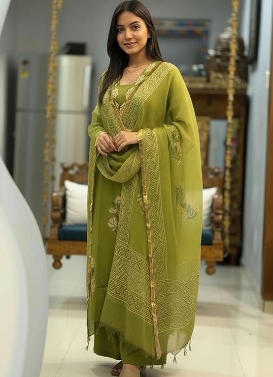 - 🧵 Complete Kurta Set: Includes a straight printed kurta, comfortable matching pants, and coordinated dupatta for a complete ethnic outfit