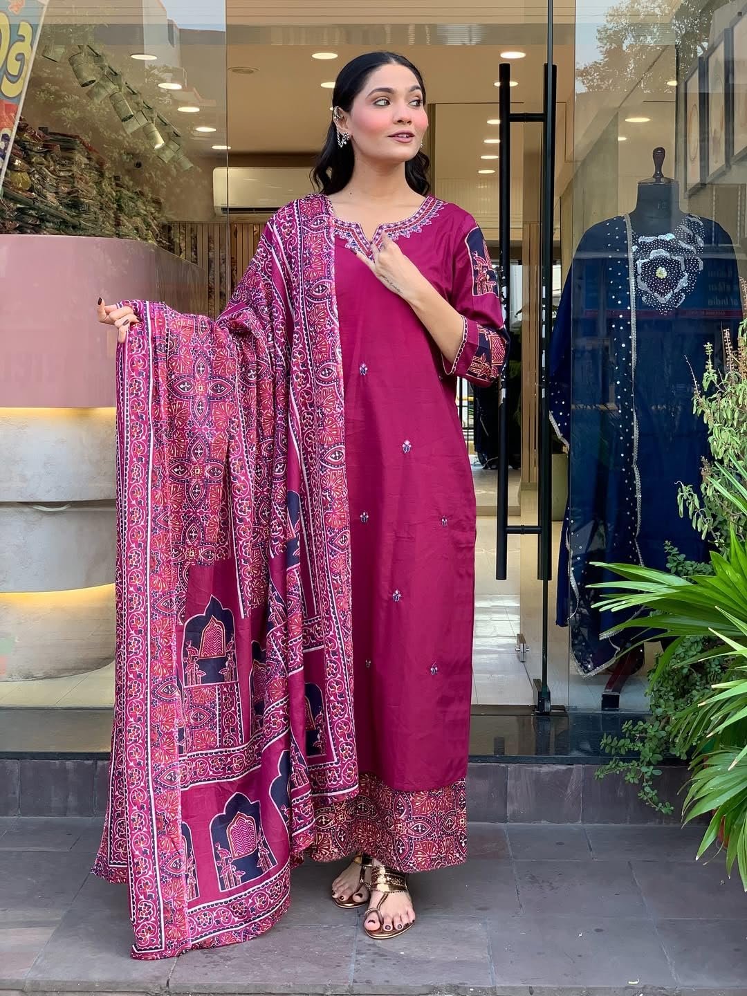 - Kurta Set Fabric: Rayon Viscose (Rayon Viscose 100%) || Kurta Set Color: Rani