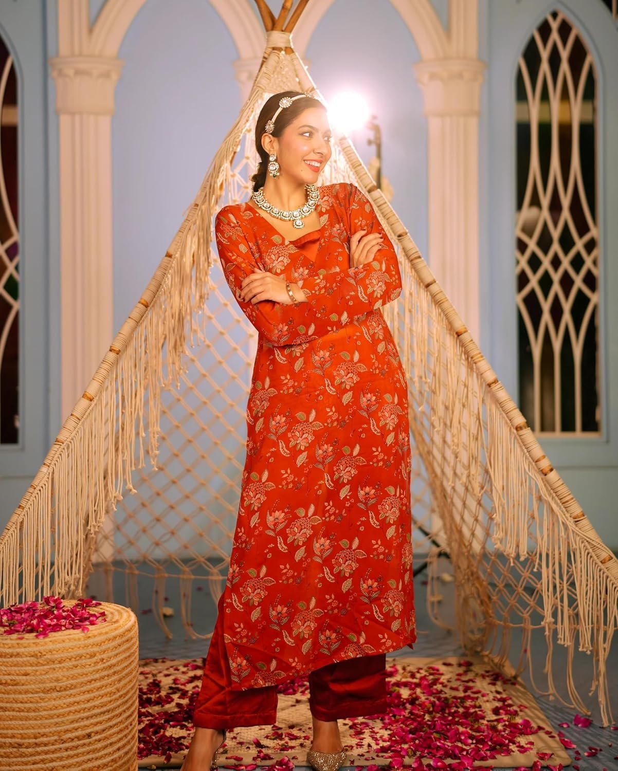 - Kurta Set Fabric: Rayon Viscose (Rayon Viscose 100%) || Kurta Set Color :- Orange