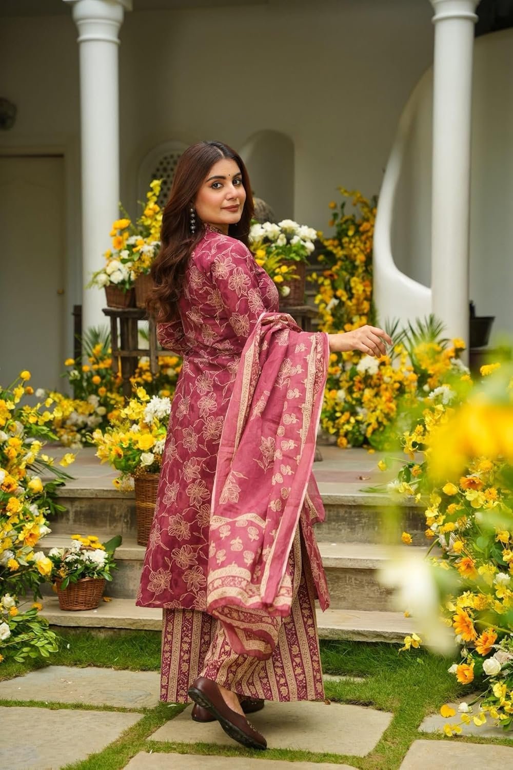 - This set includes 1 kurta and 1 palazzo with dupatta. Work: – Printed || Neck Style: V-Neck